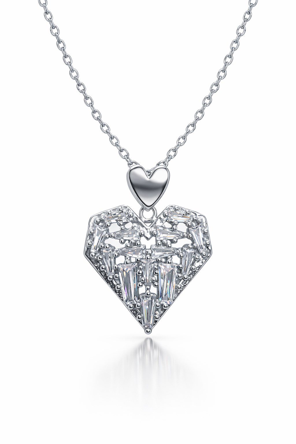 Toptan Gümüş Renk Sallantılı Kalp Baget Model Top Zincir Çelik Kolye- 3850
