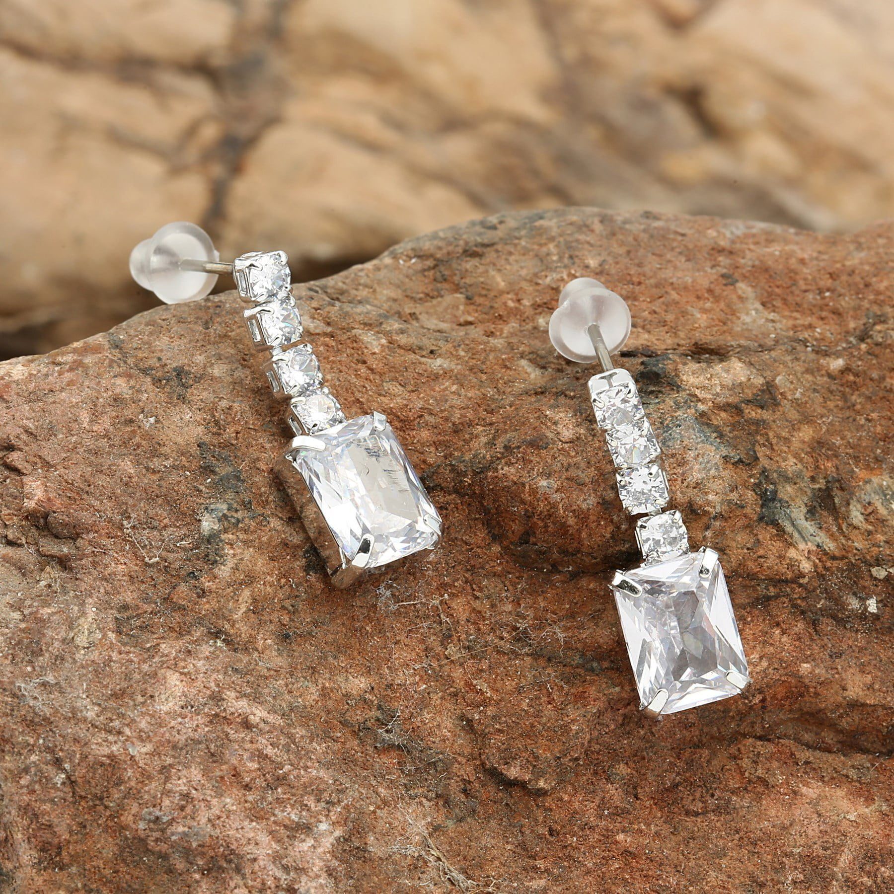 Toptan Gümüş Renk Şerit Sallantılı Çivili Zirkon Küpe – 1314