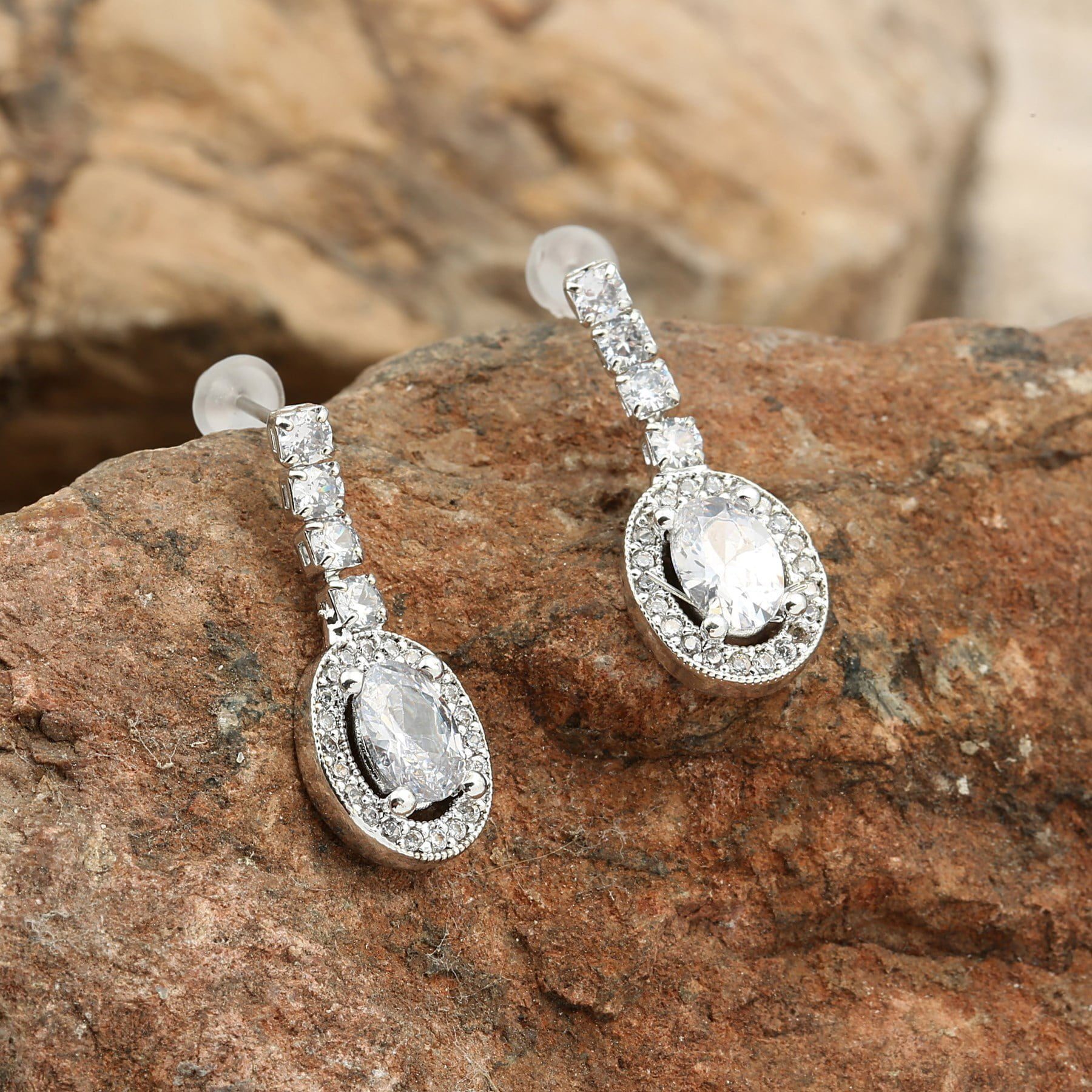 Toptan Gümüş Renk Şerit Sallantılı Çivili Zirkon Küpe – 1316