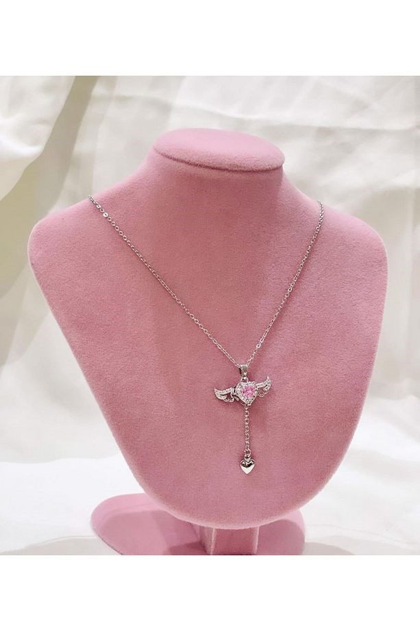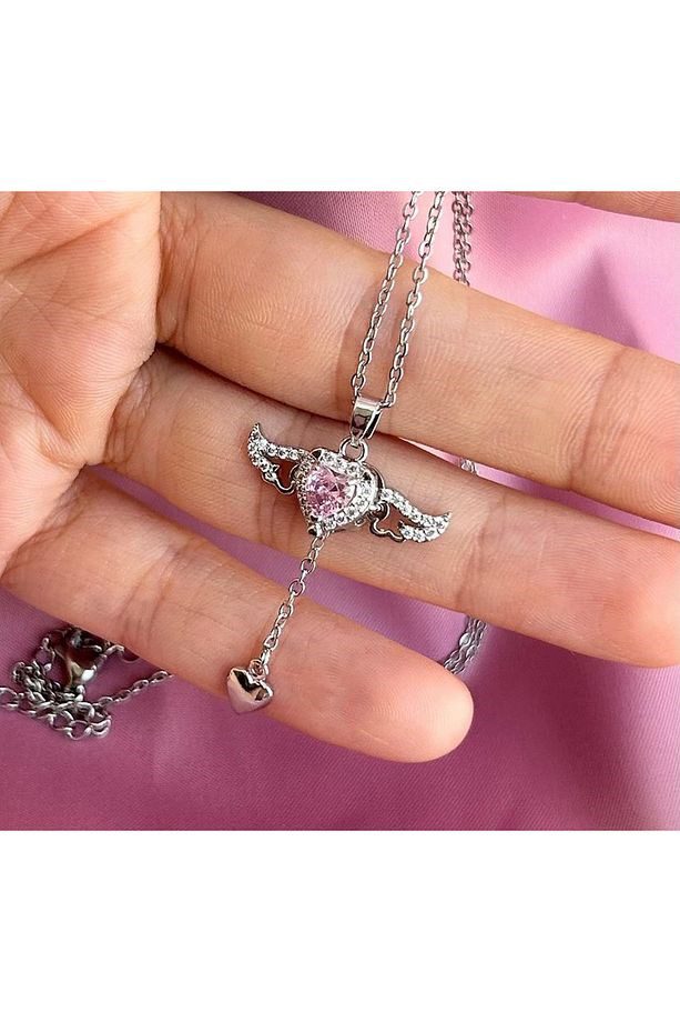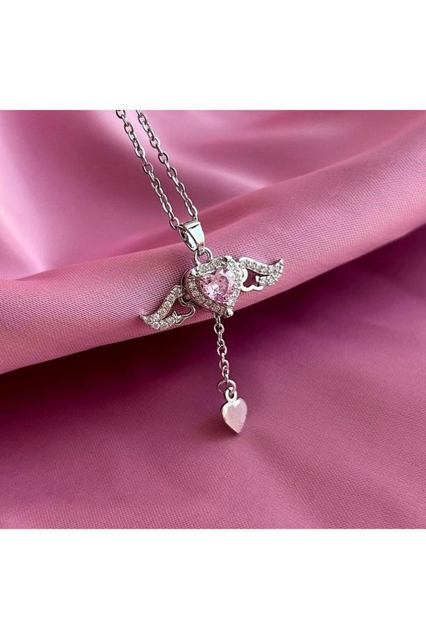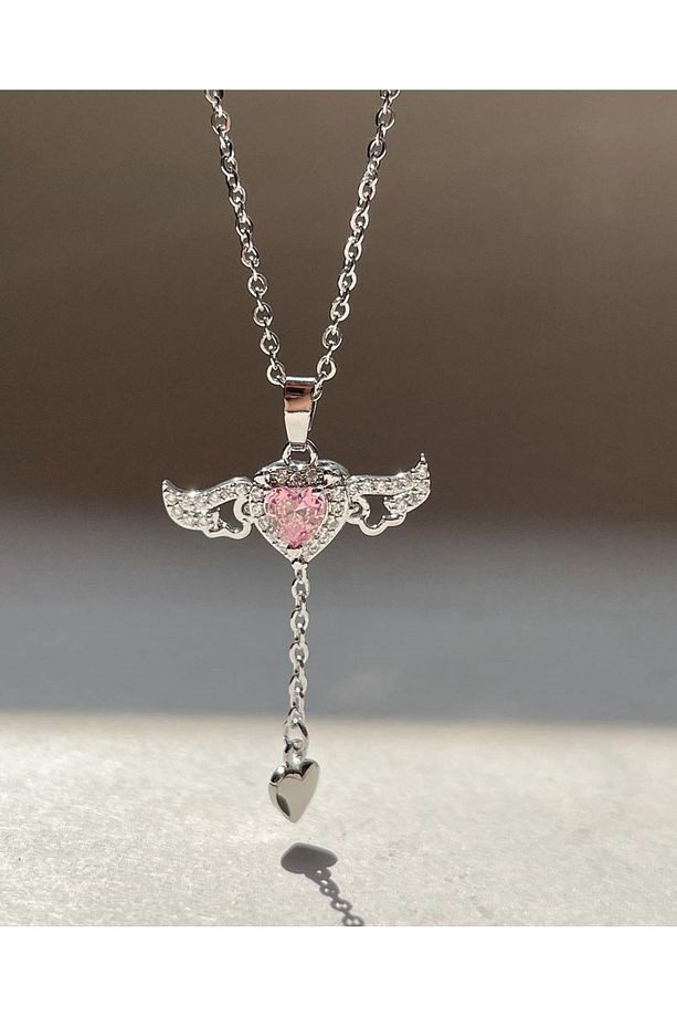 Toptan Gümüş Renk Sevgi Meleği Kolye Kadın Çelik Kolye – 3413