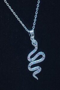 Toptan Gümüş Renk Sf Zincir Renkli Taşlı Yılan Çelik Kolye – 2546