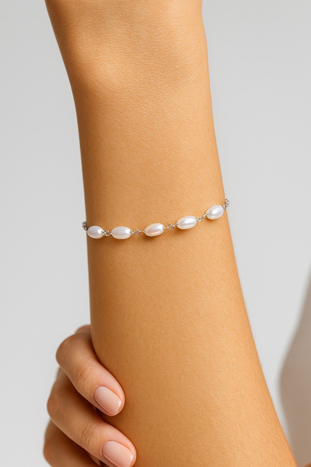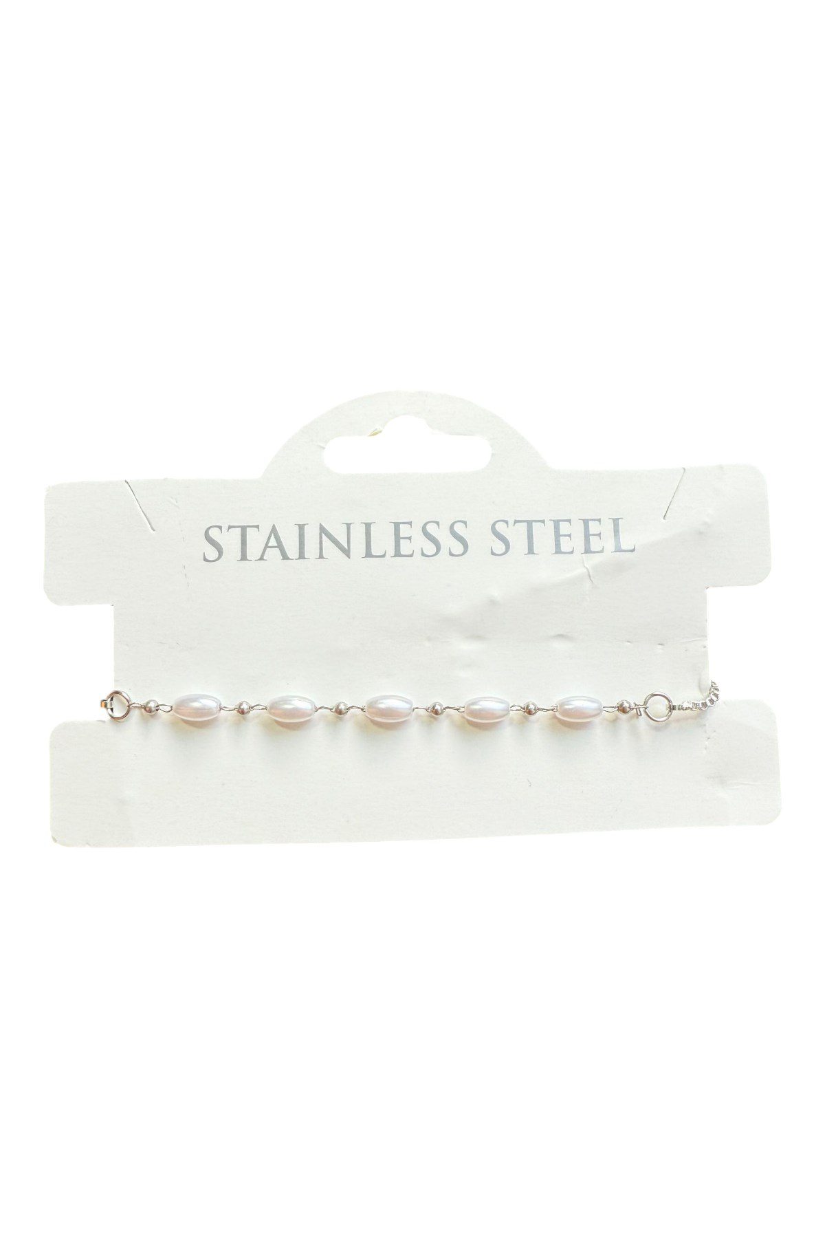 Toptan Gümüş Renk Silindir İnci Asansör Çelik Bileklik – 3620