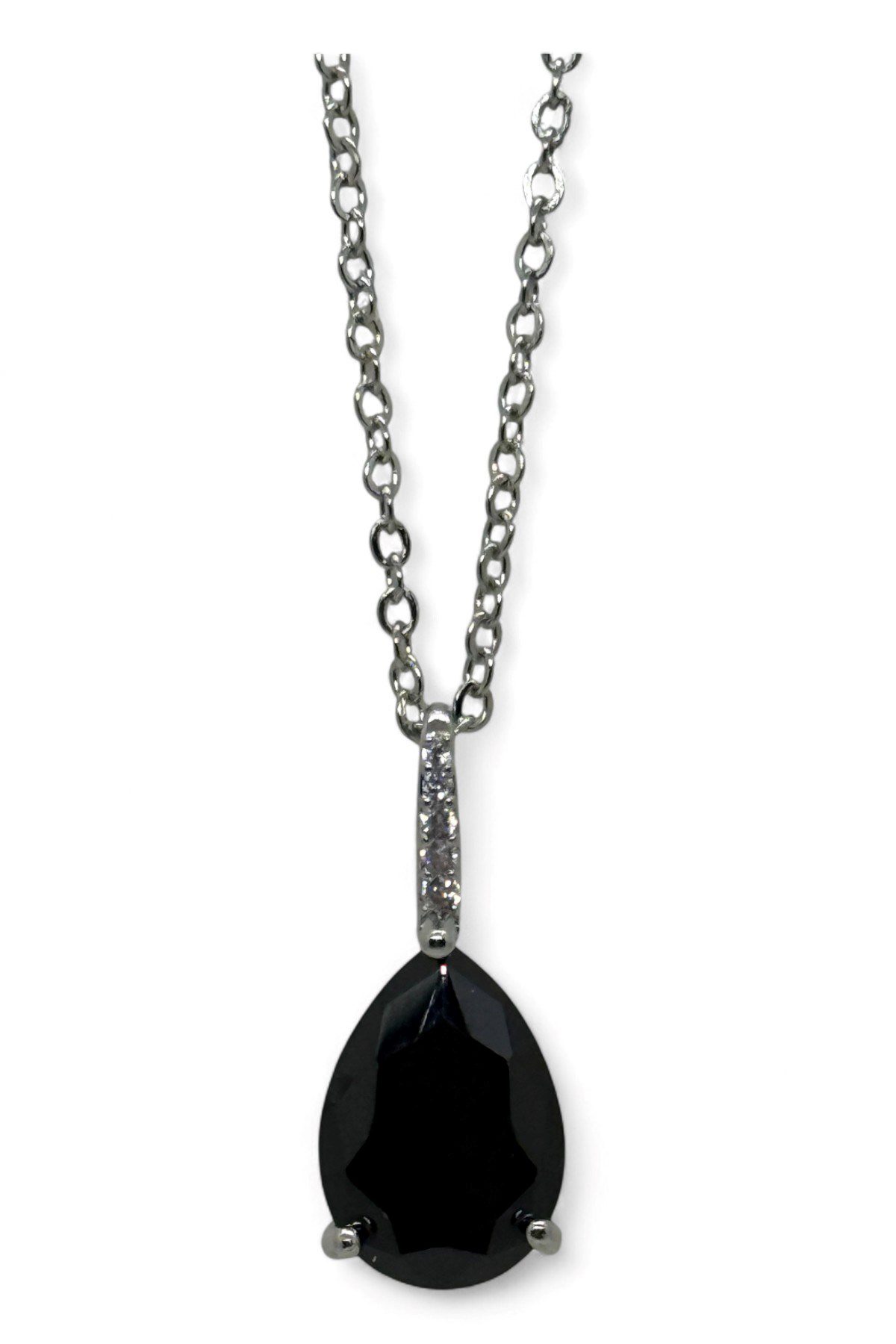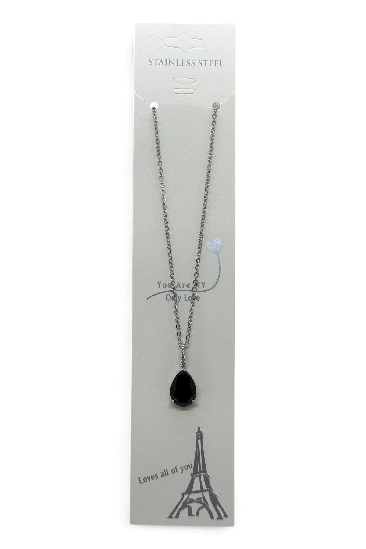 Toptan Gümüş Renk Sıra Taşlı Siyah Damla Model Sf Zincir Çelik Kolye – 3781