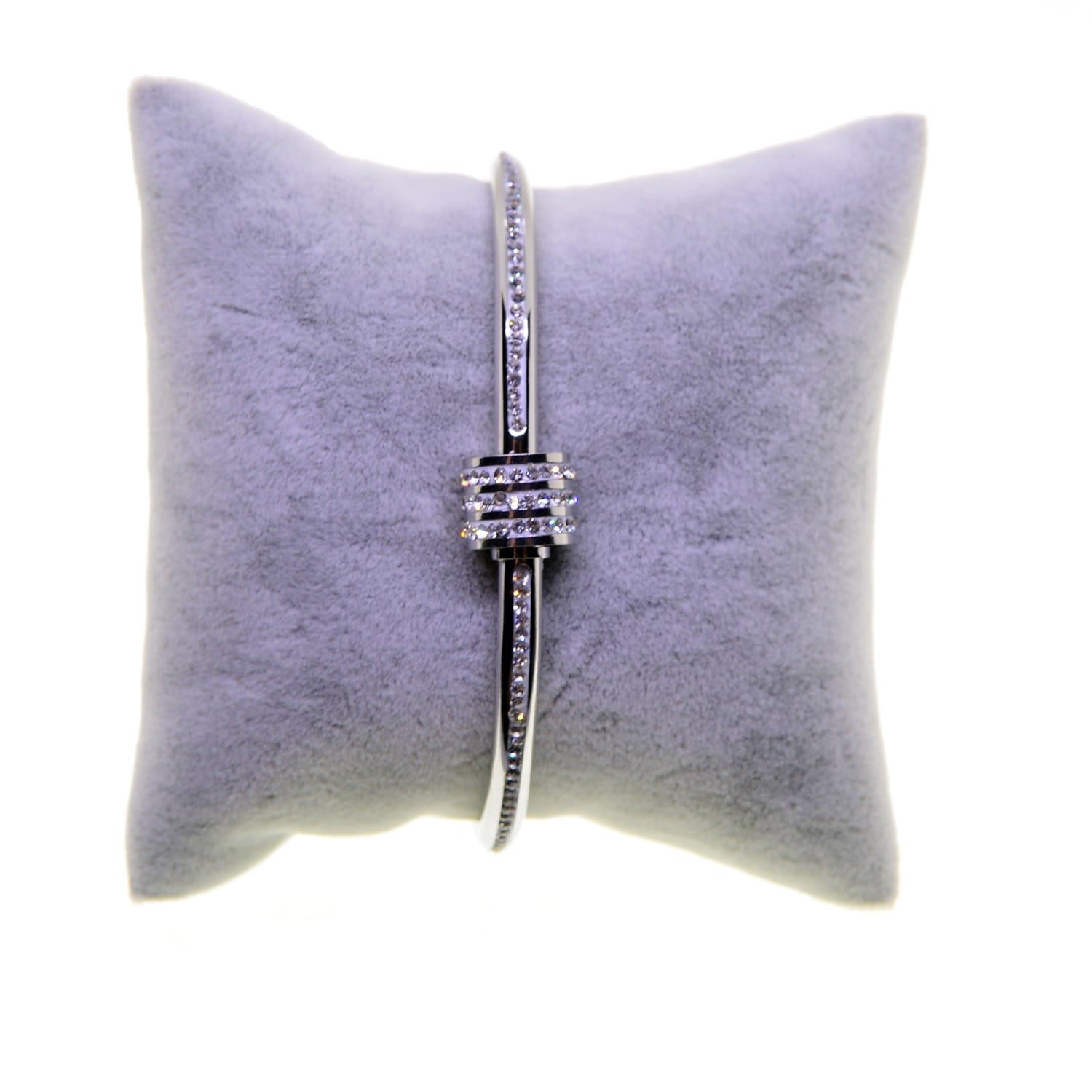 Toptan Gümüş Renk Taşlı Topuz Model Çelik Kelepçe Bileklik – 2637