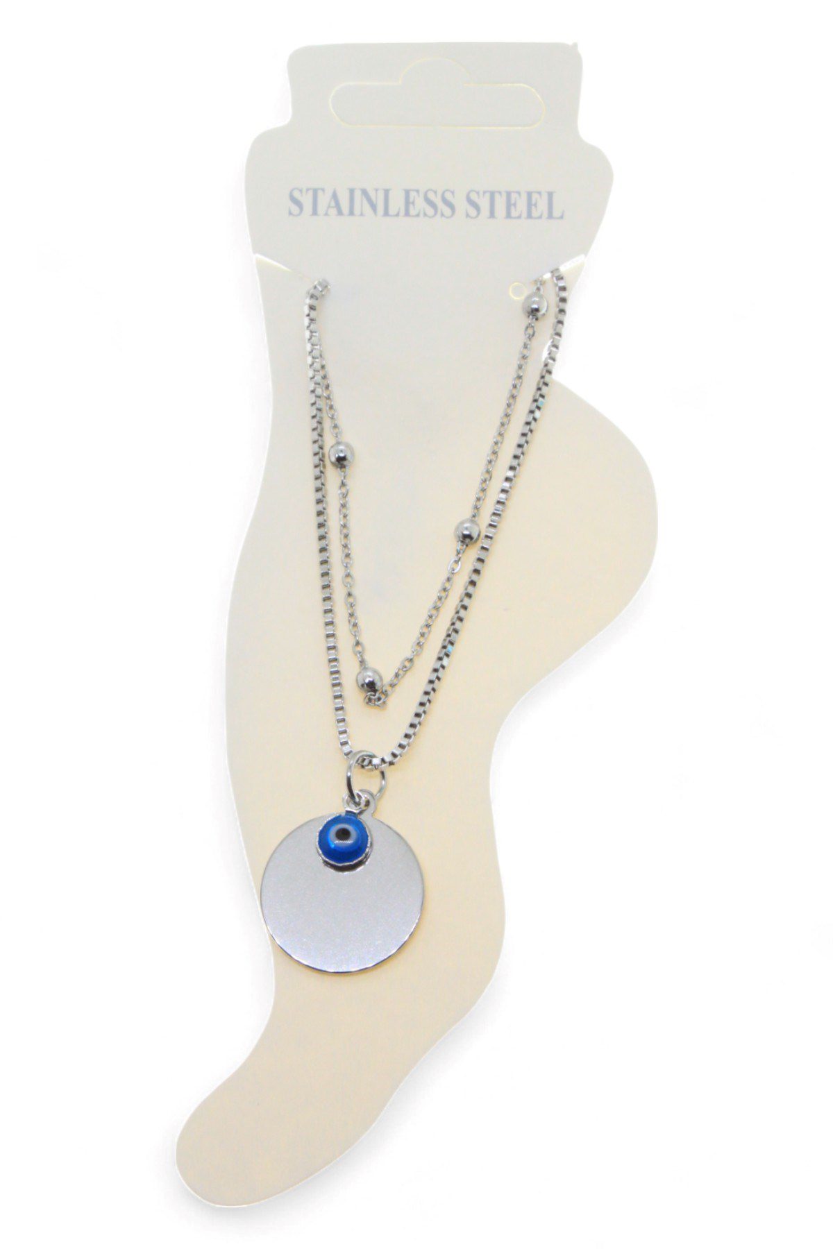 Toptan Gümüş Renk Top Asansör Büyük Pul Nazar Göz Çelik Halhal – 3479