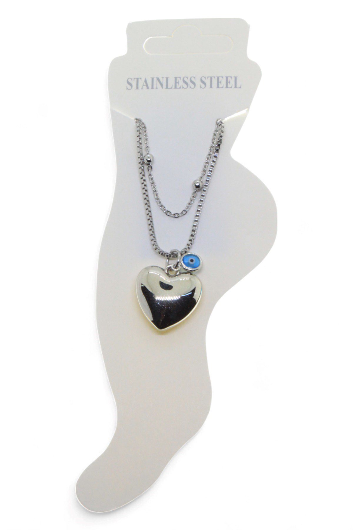 Toptan Gümüş Renk Top Asansör Küp Nazar Kalp Çelik Halhal – 3427