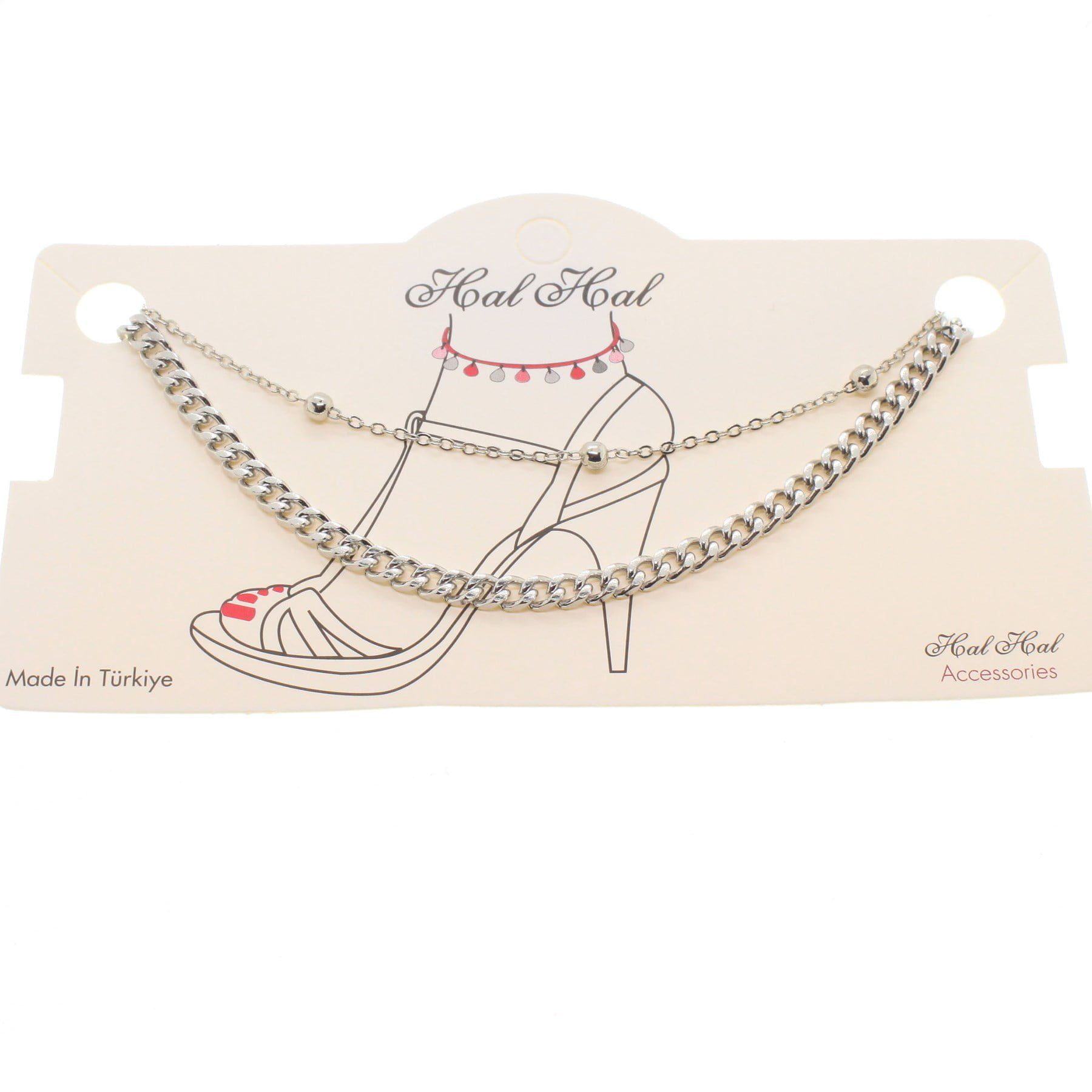 Toptan Gümüş Renk Top Ve Cadena Zincir Halhal – 1827