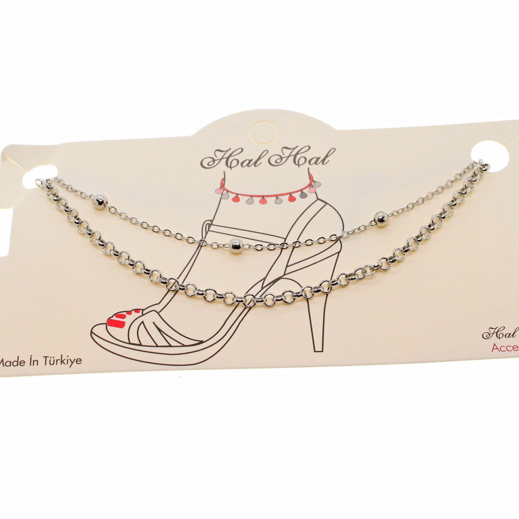 Toptan Gümüş Renk Top Ve Doc Zincir Halhal – 1821
