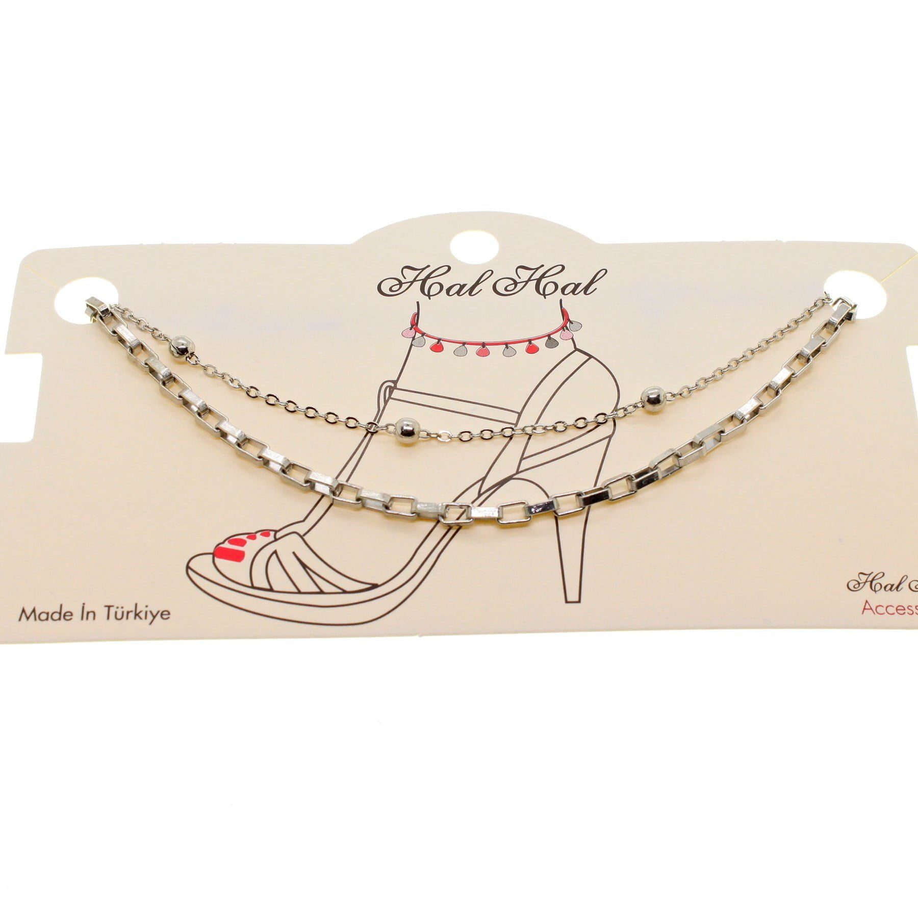 Toptan Gümüş Renk Top Ve Küp Zincir Halhal – 1822
