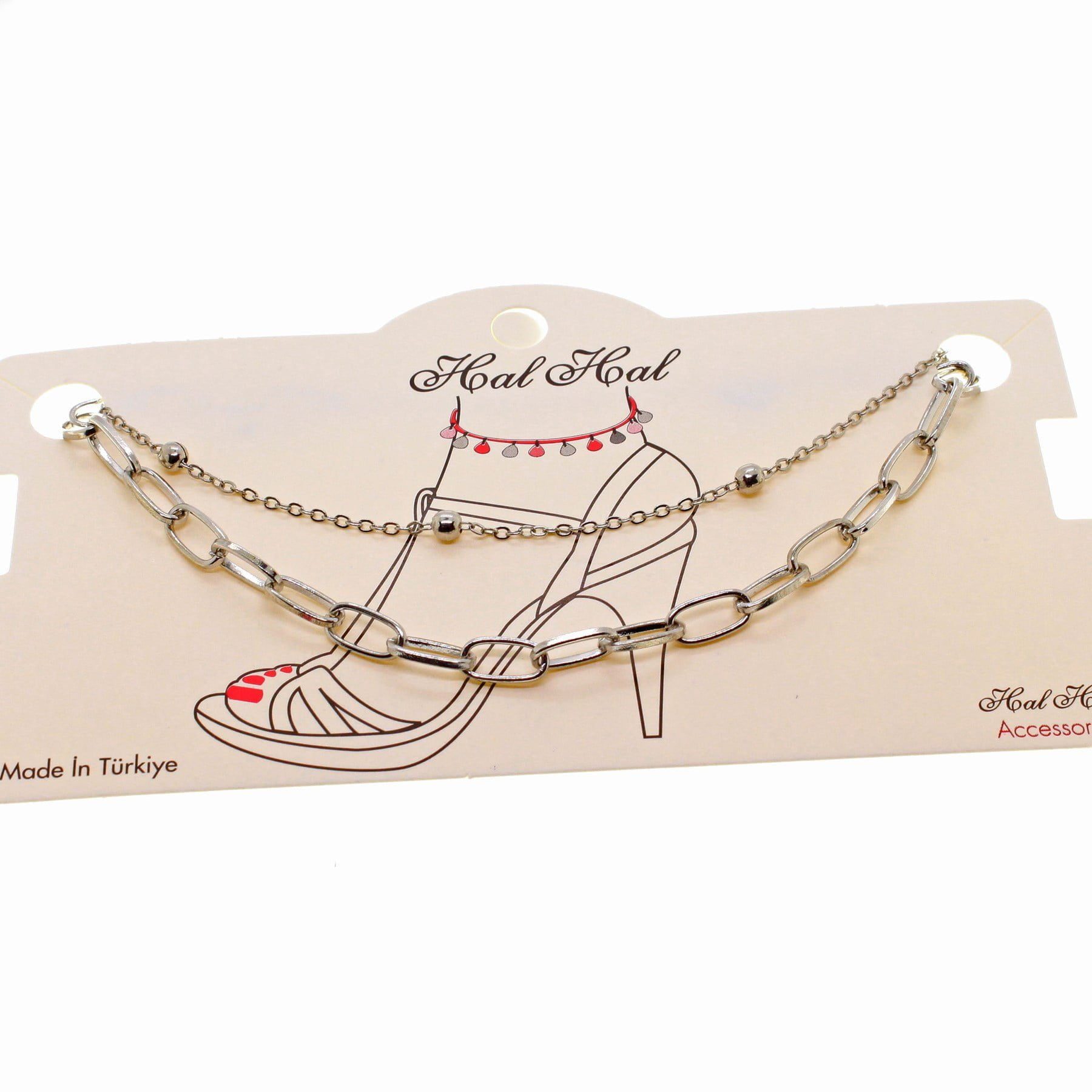 Toptan Gümüş Renk Top Ve Oval Dikdörtgen Zincir Halhal – 1820