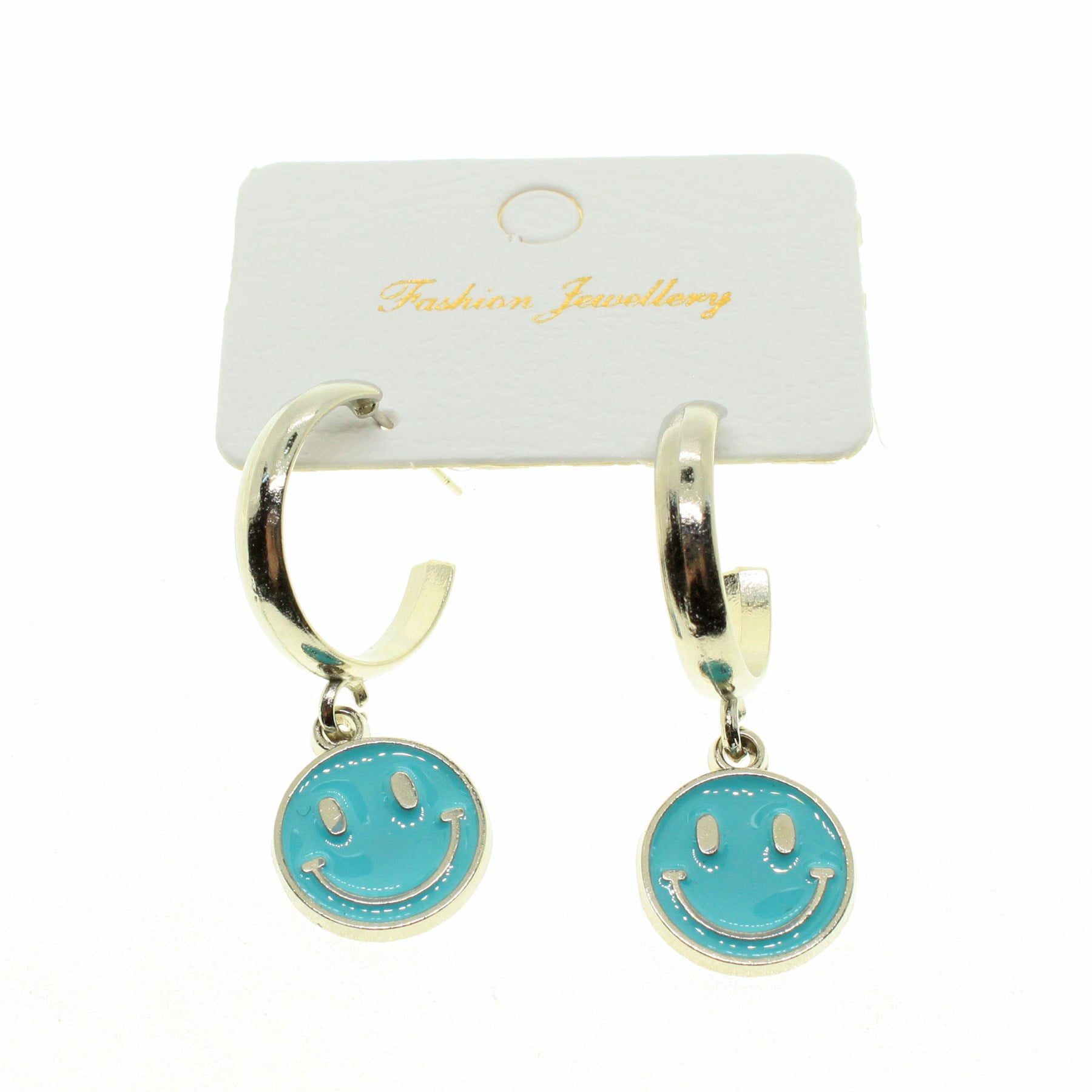 Toptan Gümüş Renk Turkuaz Mineli Gülen Surat Küpe – 1980