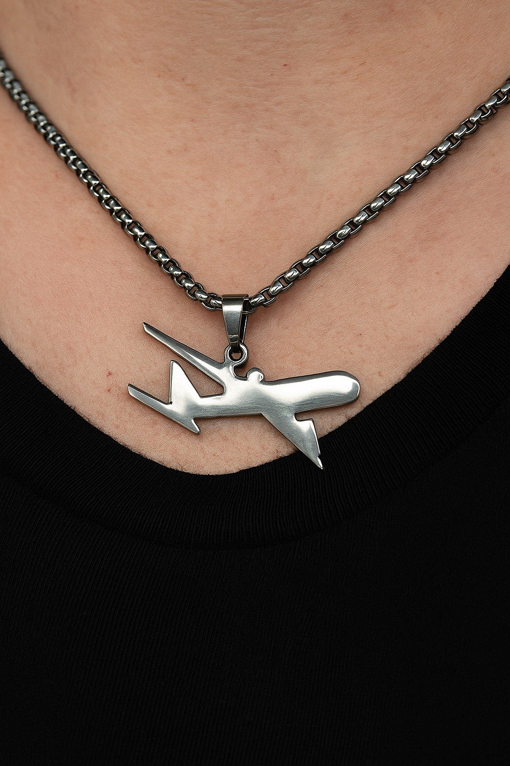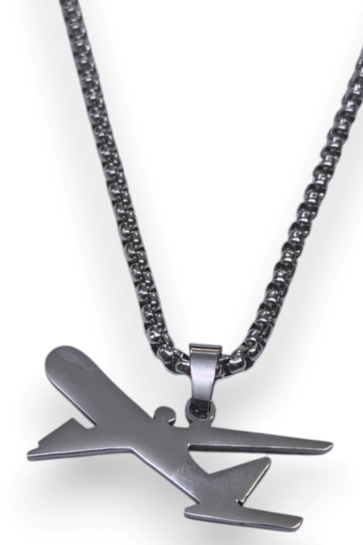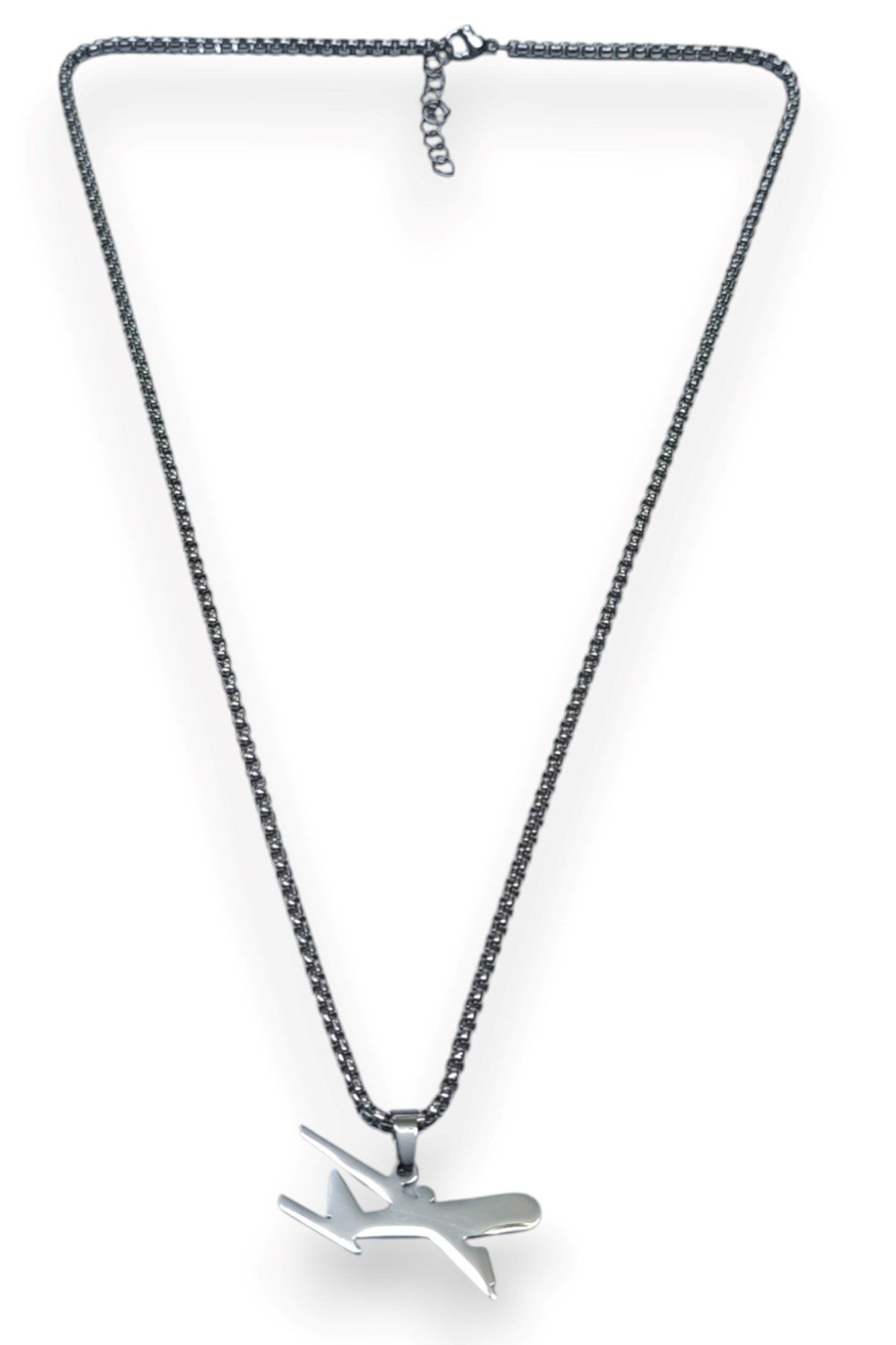 Toptan Gümüş Renk Uçak Model Unisex Arnavut Zincir Çelik Kolye – 3314