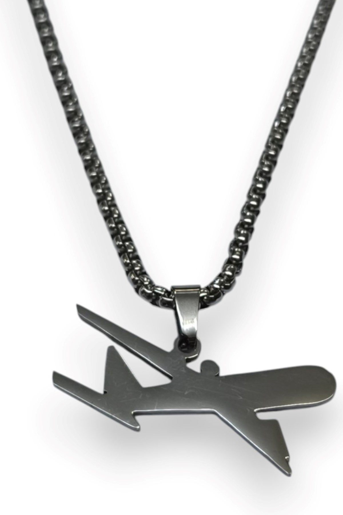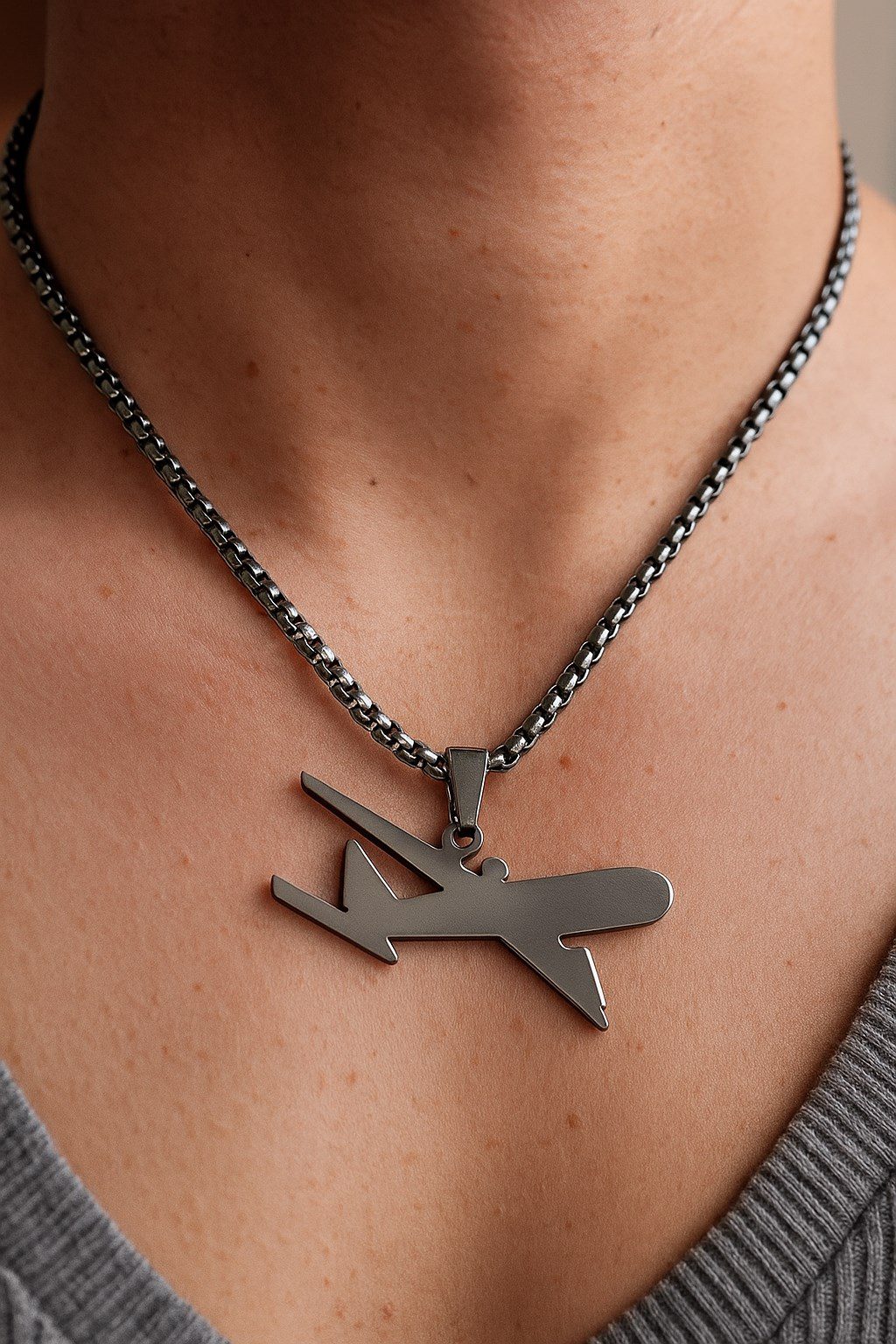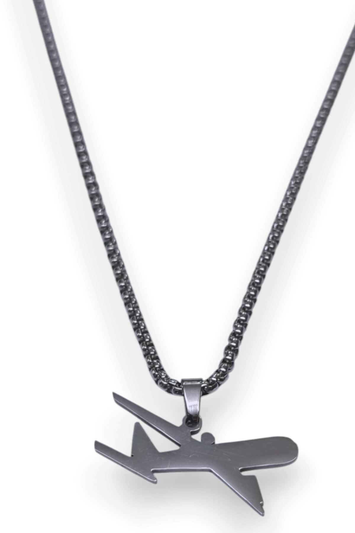 Toptan Gümüş Renk Uçak Model Unisex Arnavut Zincir Çelik Kolye – 3314