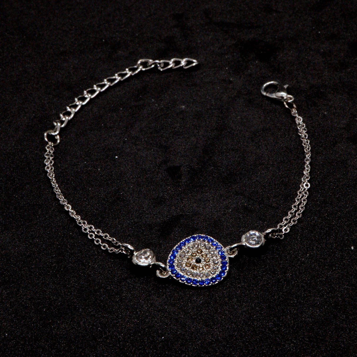 Toptan Gümüş Renk Üçgen Göz Figürlü Çift Zincirli Bileklik 871