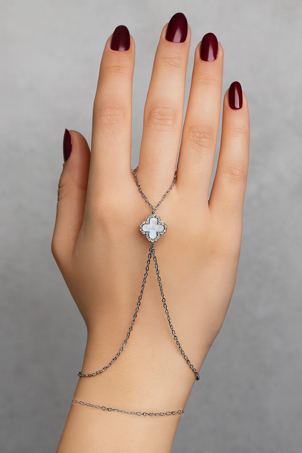 Toptan Gümüş Renk Van Clef Çift Yönlü Önü Beyaz Araksı Siyah Çelik Şahmeran – 3516