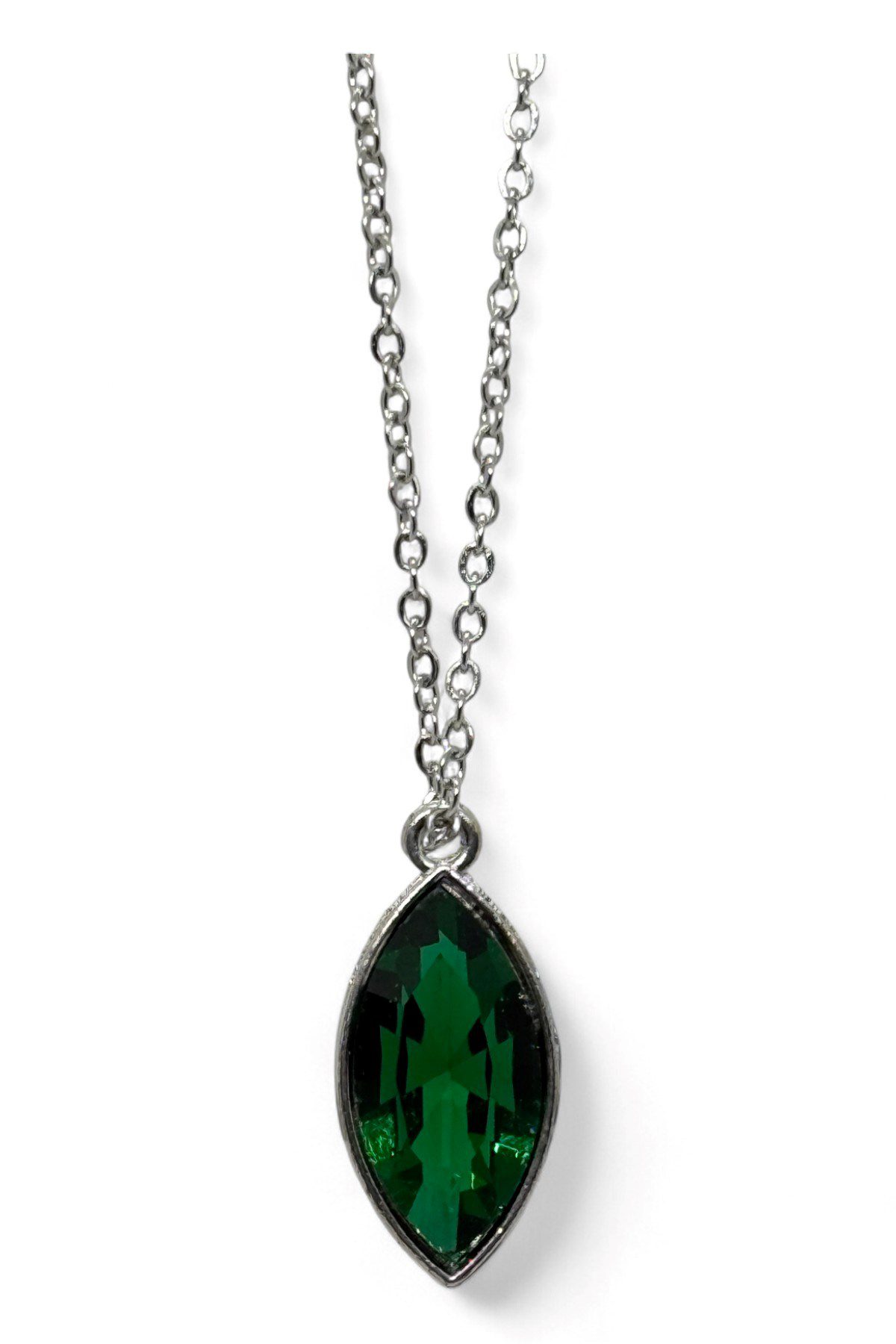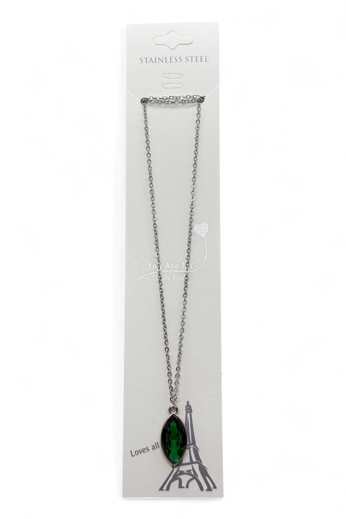 Toptan Gümüş Renk Yeşil Mekik Taşlı Model Sf Zincir Çelik Kolye – 3805