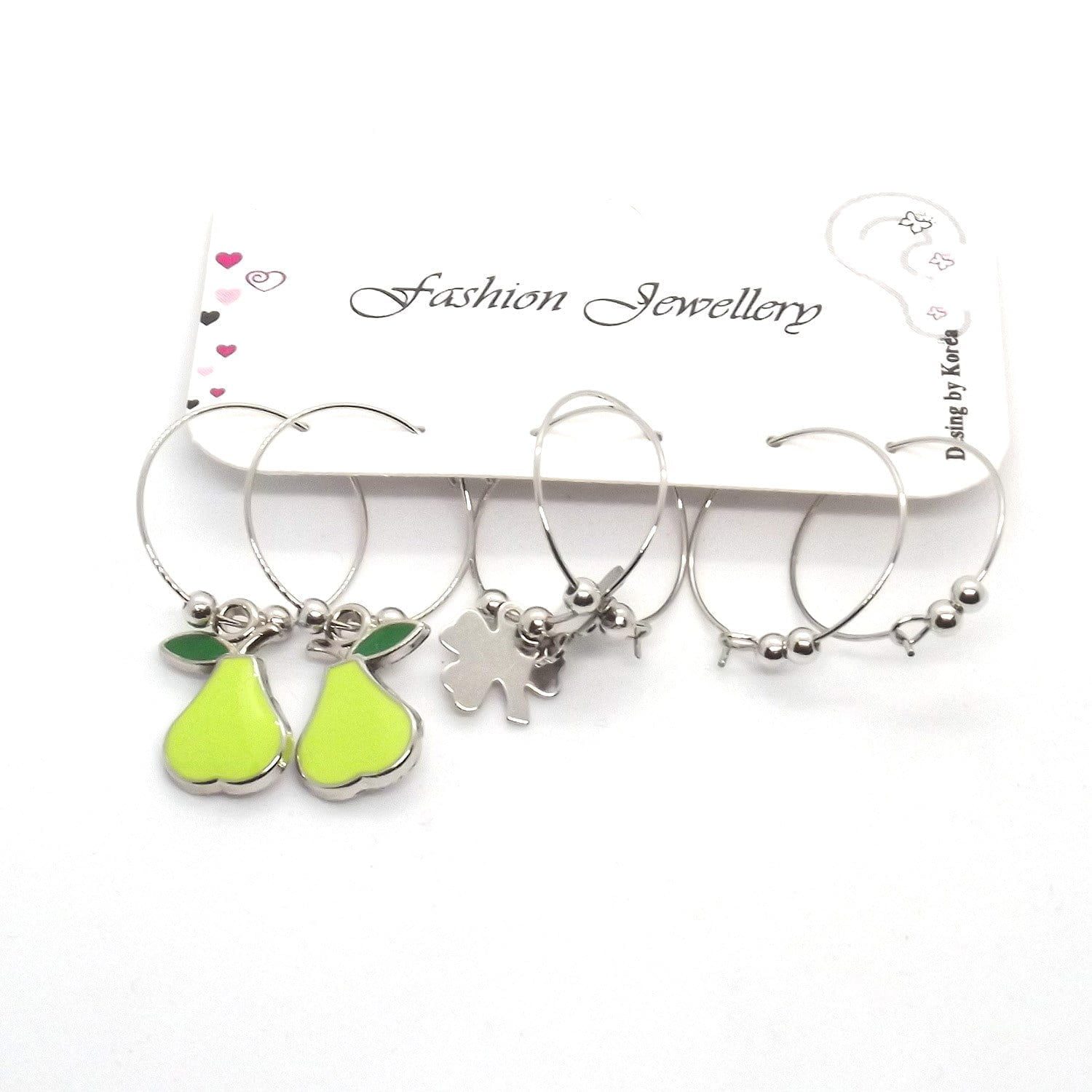 Toptan Gümüş Renk Yeşil Mineli Armut Yonca Figurlu Kombin Küpe 722