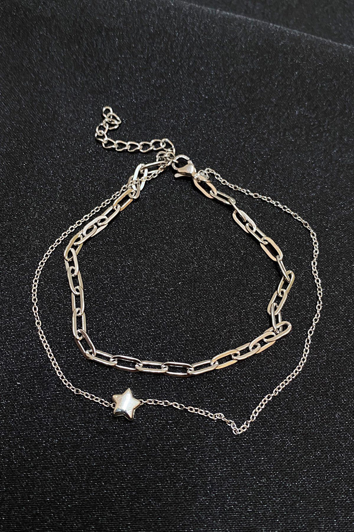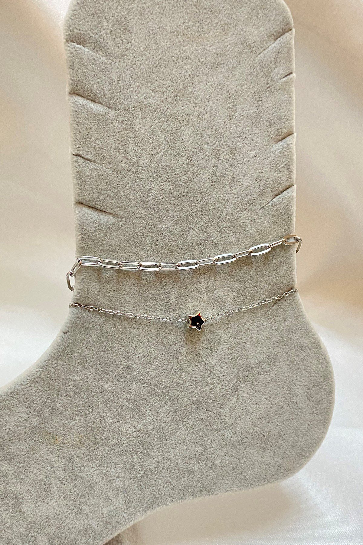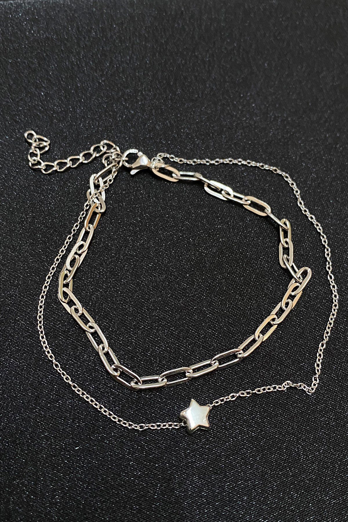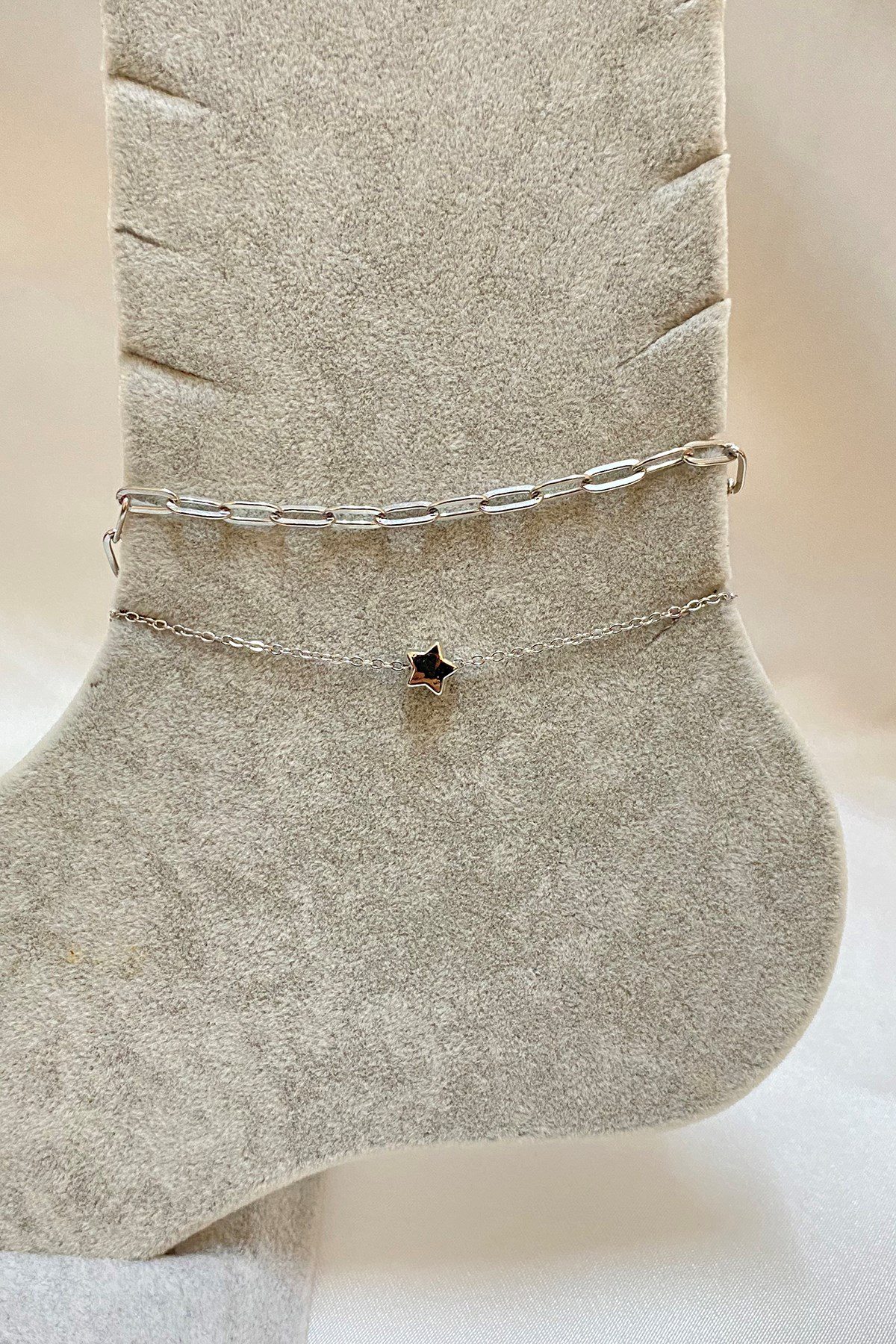 Toptan Gümüş Renk Yıldız Model Esme Ve Sf Zincir Çelik Halhal – 3302