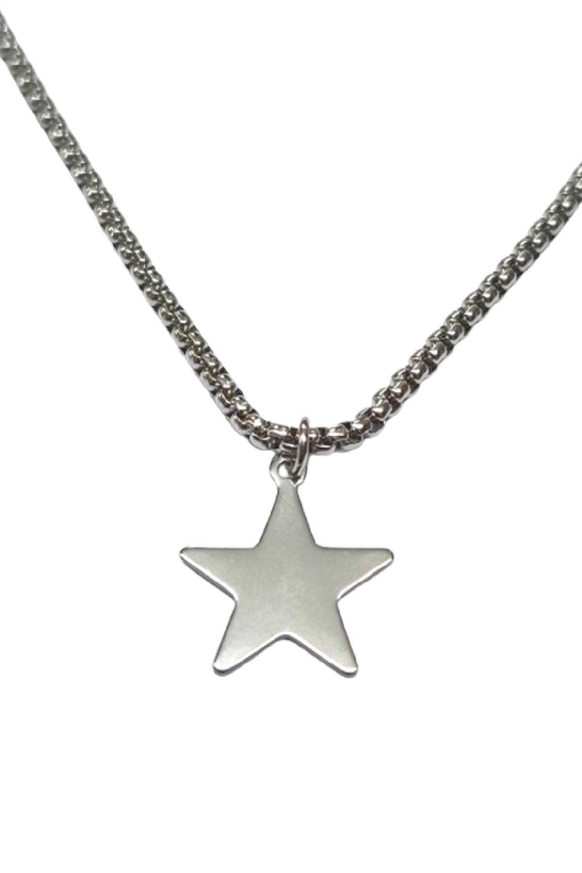 Toptan Gümüş Renk Yıldız Model Unisex Arnavut Zincir Çelik Kolye – 3307