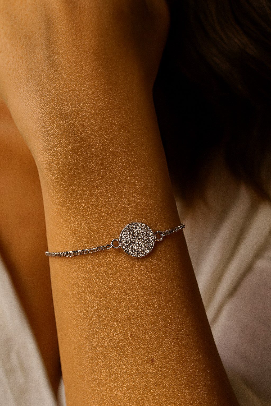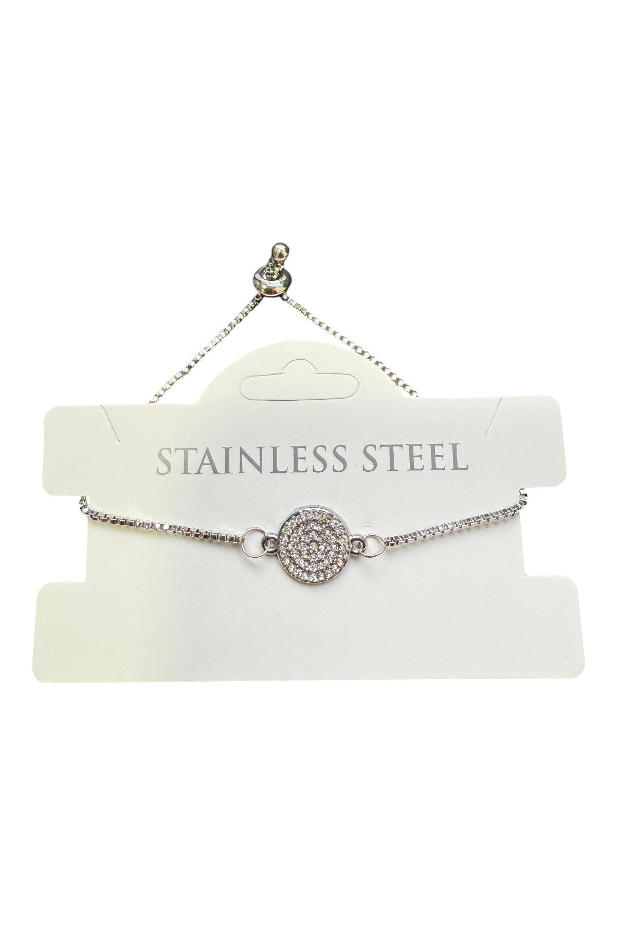 Toptan gümüş renk yuvarlak beyaz taş Asansör Çelik Bileklik – 3605