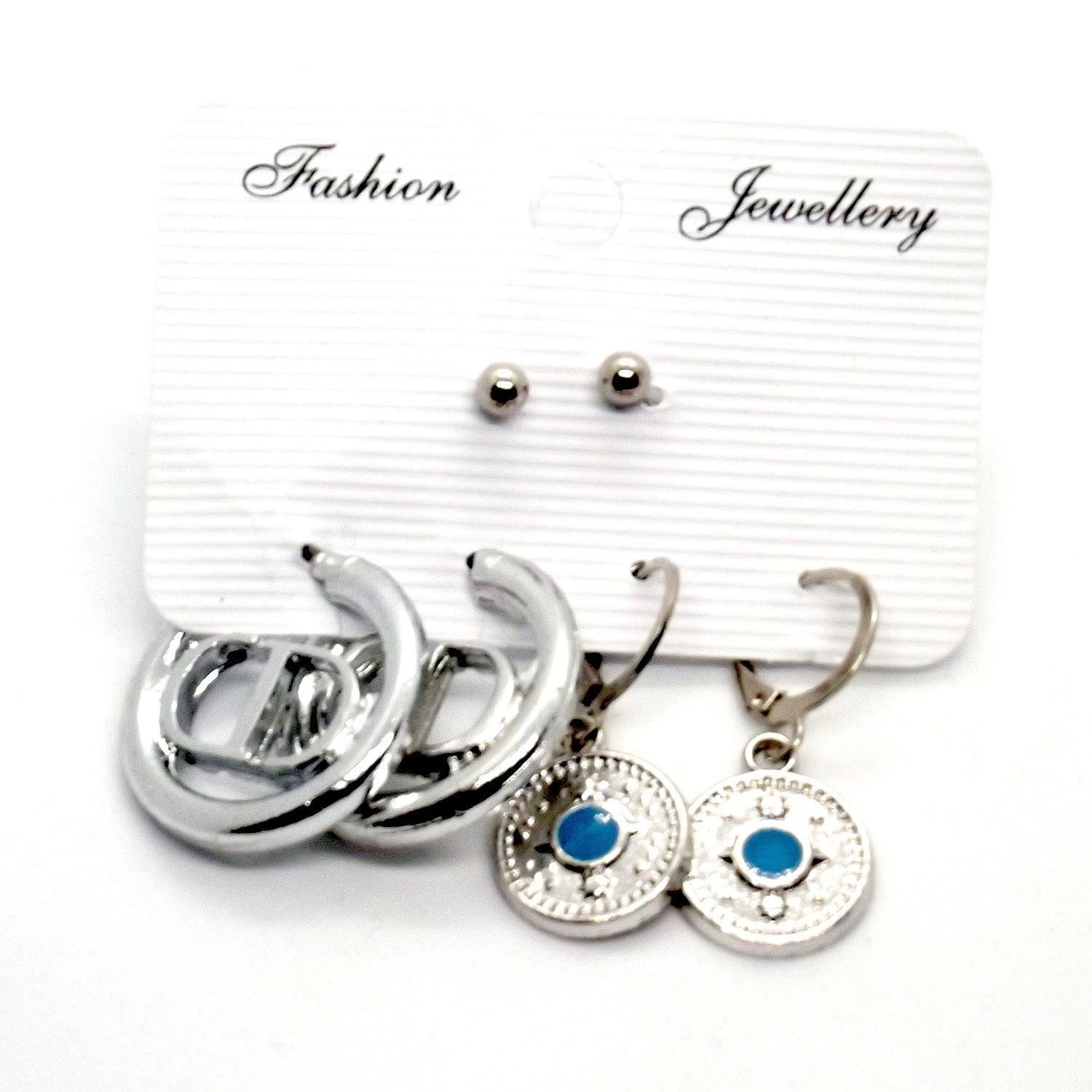 Toptan Gümüş Renk Yuvarlak Cd Kombin Küpe 730