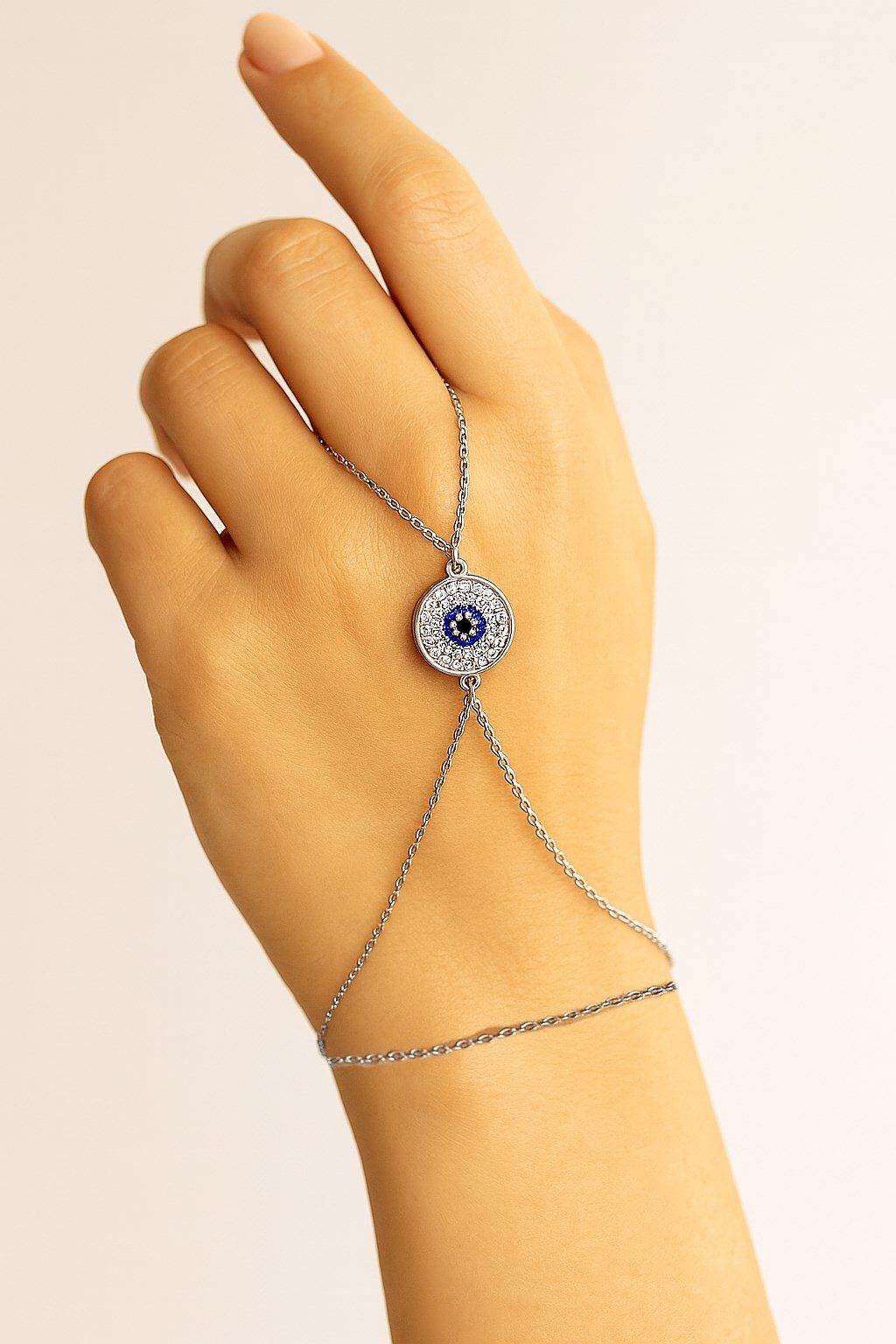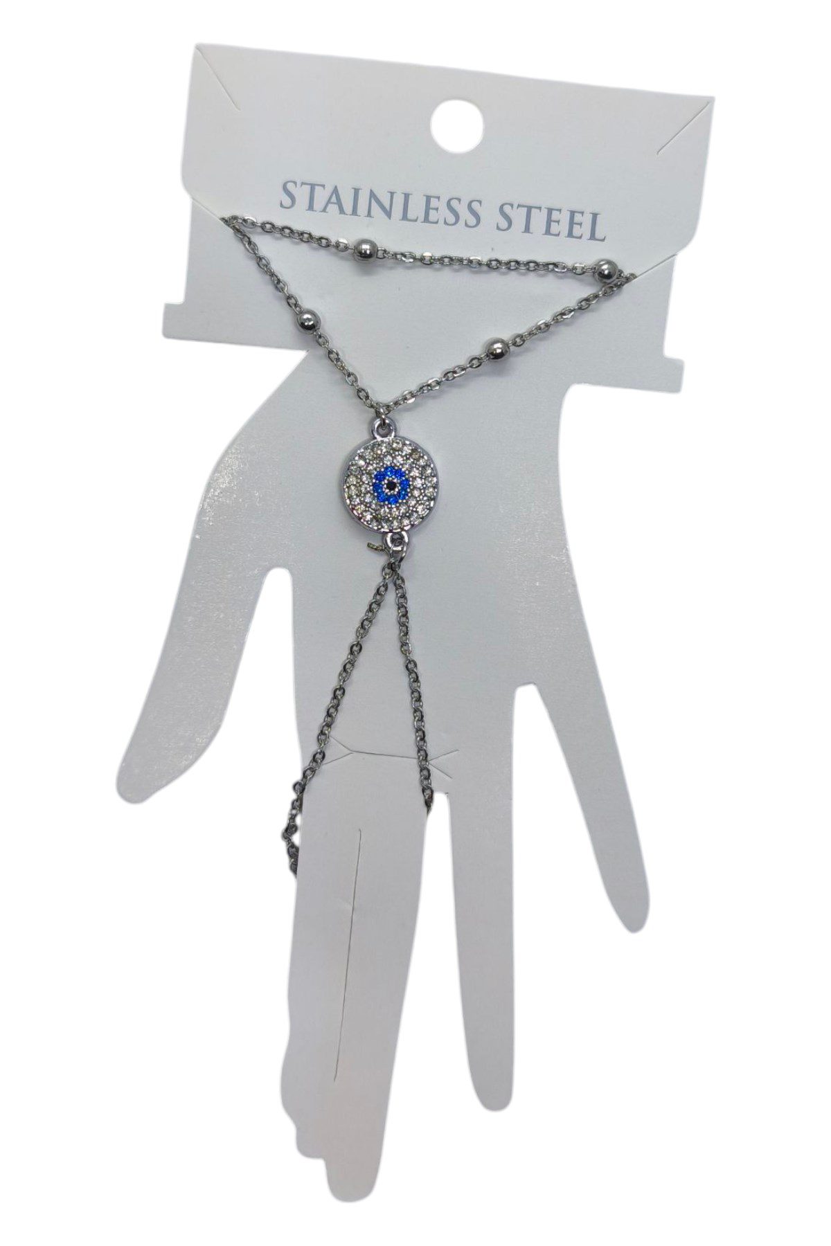 Toptan Gümüş Renk Yuvarlak Göz Nazar Çelik Şahmeran – 3566