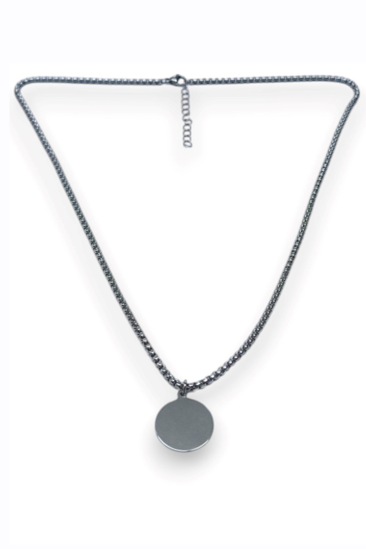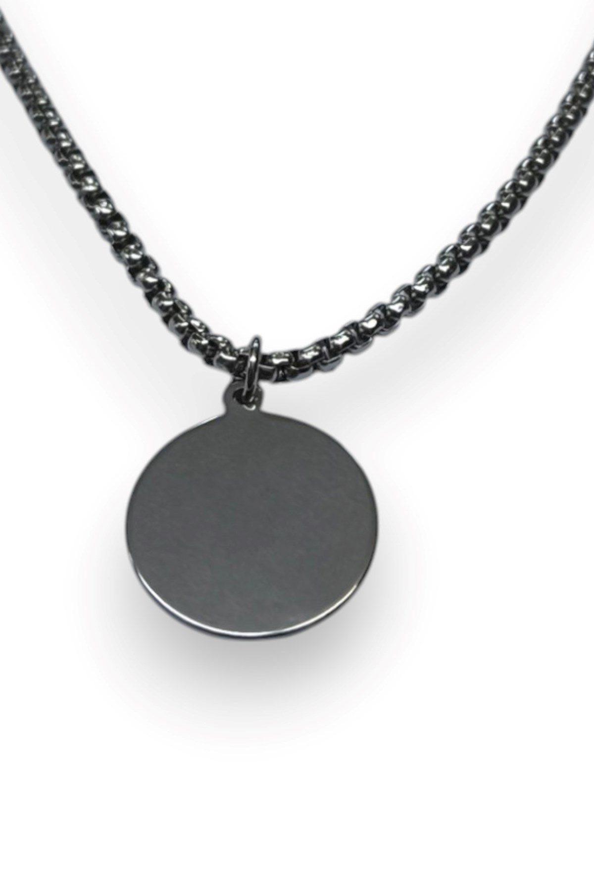 Toptan Gümüş Renk Yuvarlak Plaka Model Unisex Arnavut Zincir Çelik Kolye – 3318
