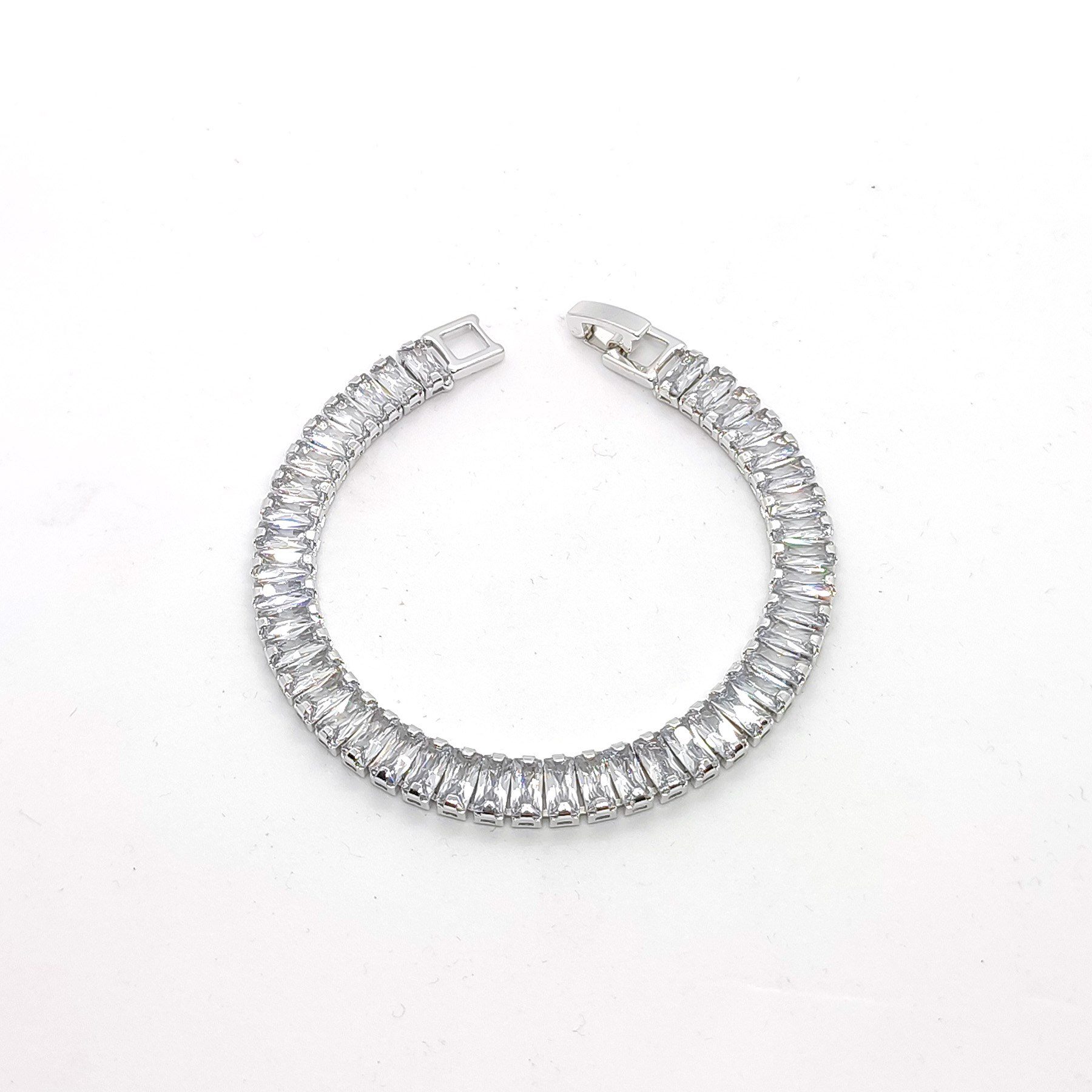 Toptan Gümüş Renk Zirkon Baget Taşlı Çelik Bileklik