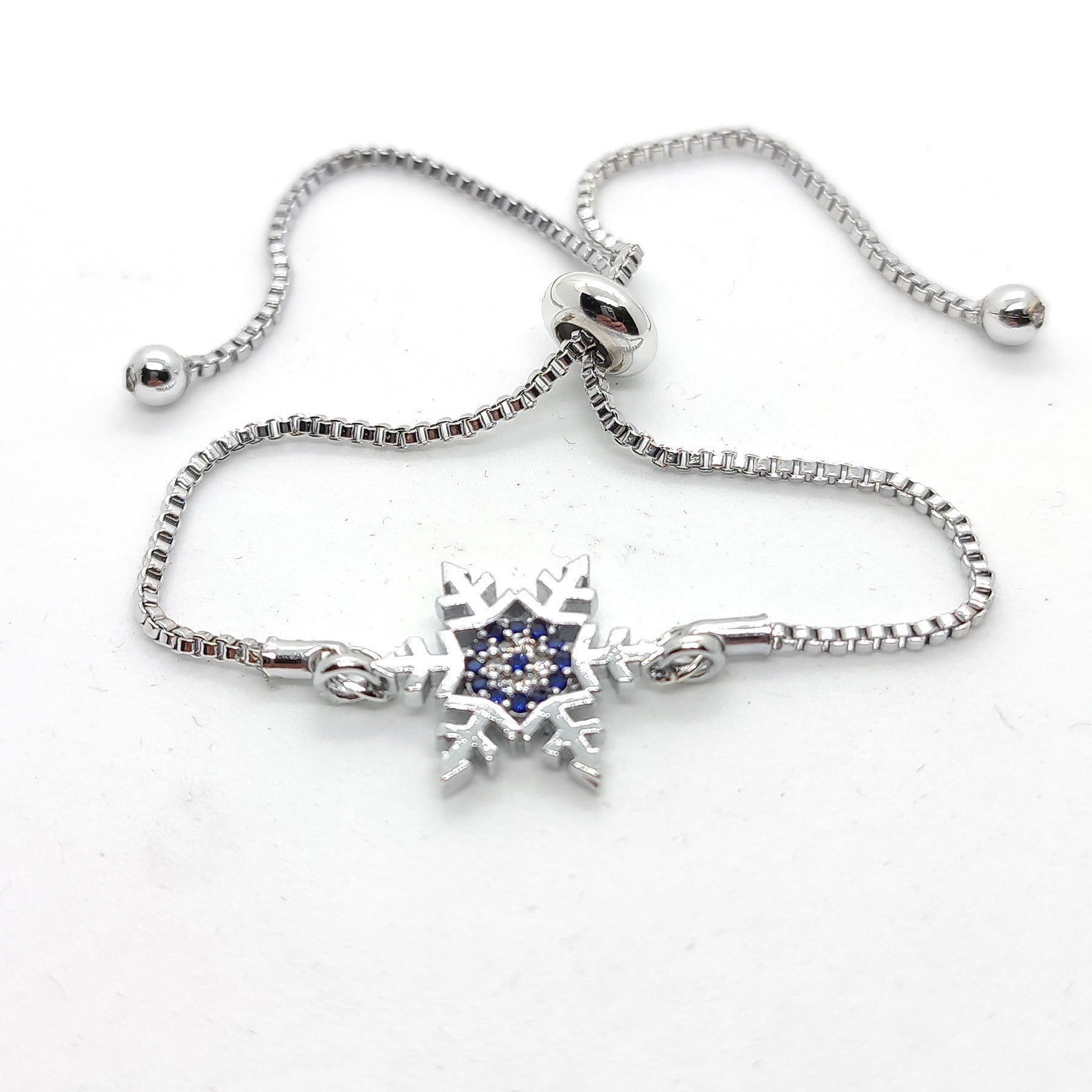Toptan Gümüş Renk Zirkon Taşlı Büyük Kar Tanesi Asansör Bileklik