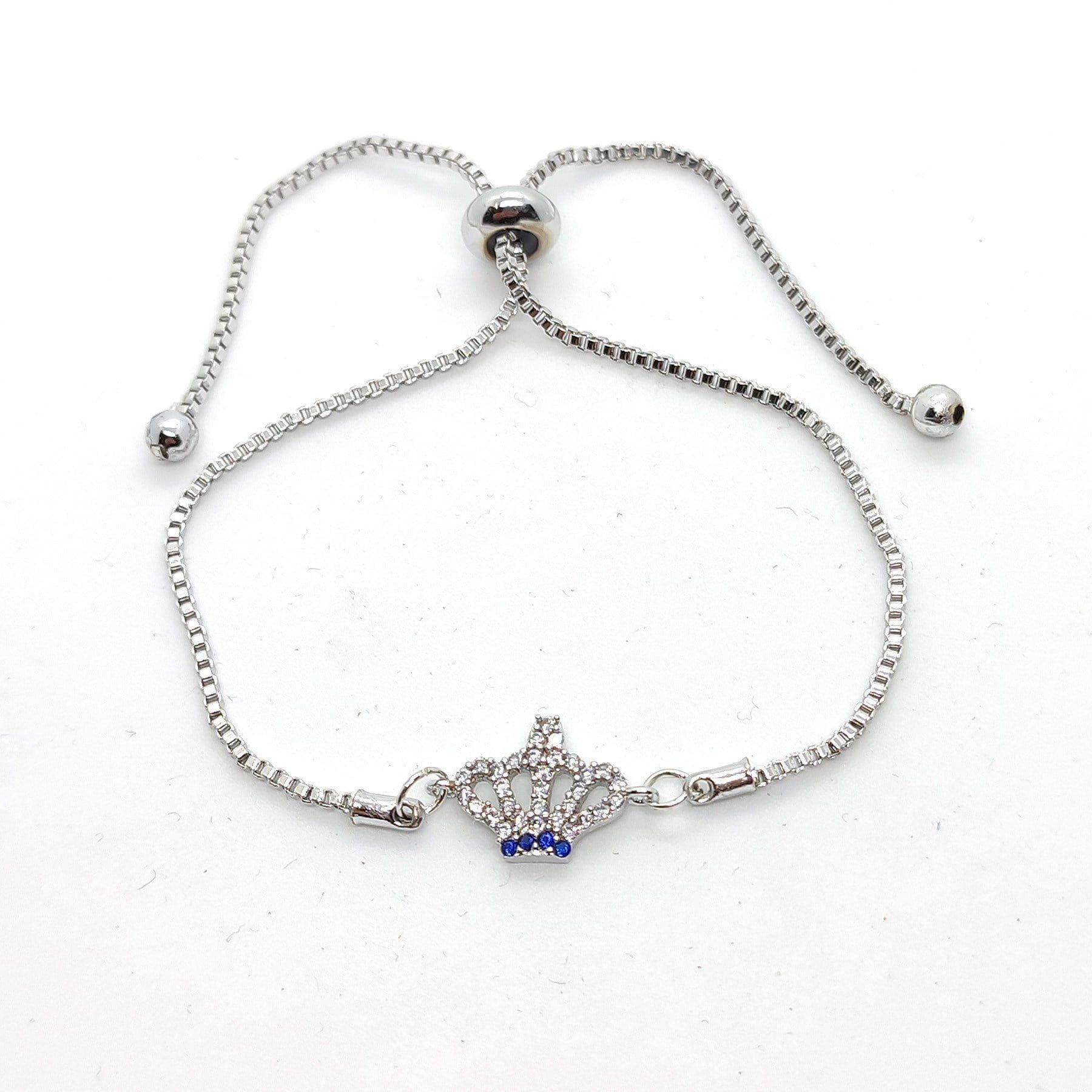 Toptan Gümüş Renk Zirkon Taşlı Çok Taşlı Kral Taçı Asansör Bileklik