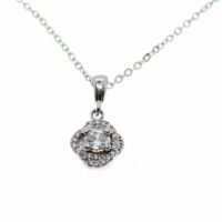 Toptan Gümüş Renk Zirkon Taşlı Dört Yaptaklı Yonca Model Zirkon Kolye – 2060