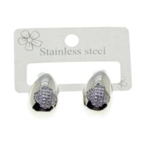 Toptan Gümüş Renk Zirkon Taşlı Gözyaşı Bottega Küpe Vip Kararmaz Solmaz Çelik Küpe – 3017