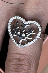 Toptan Gümüş Renk Zirkon Taşlı Kalpli Hayat Ağacı Model Çelik Yüzük Ayarlanabilir Çelik Yüzük – 3099