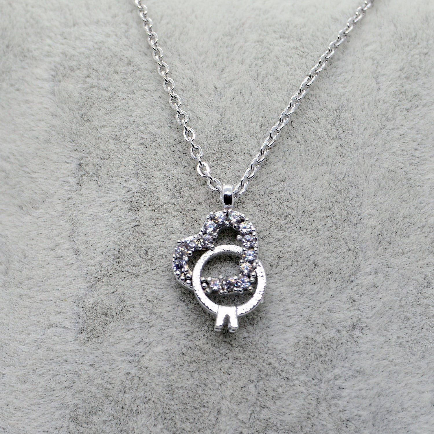 Toptan Gümüş Renk Zirkon Taşlı Kolye Kalp Yüzük Kolye 792