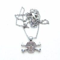 Toptan Gümüş Renk Zirkon Taşlı Kuru Kafa Beyaz Taşlı Kurukafa Kolye 939