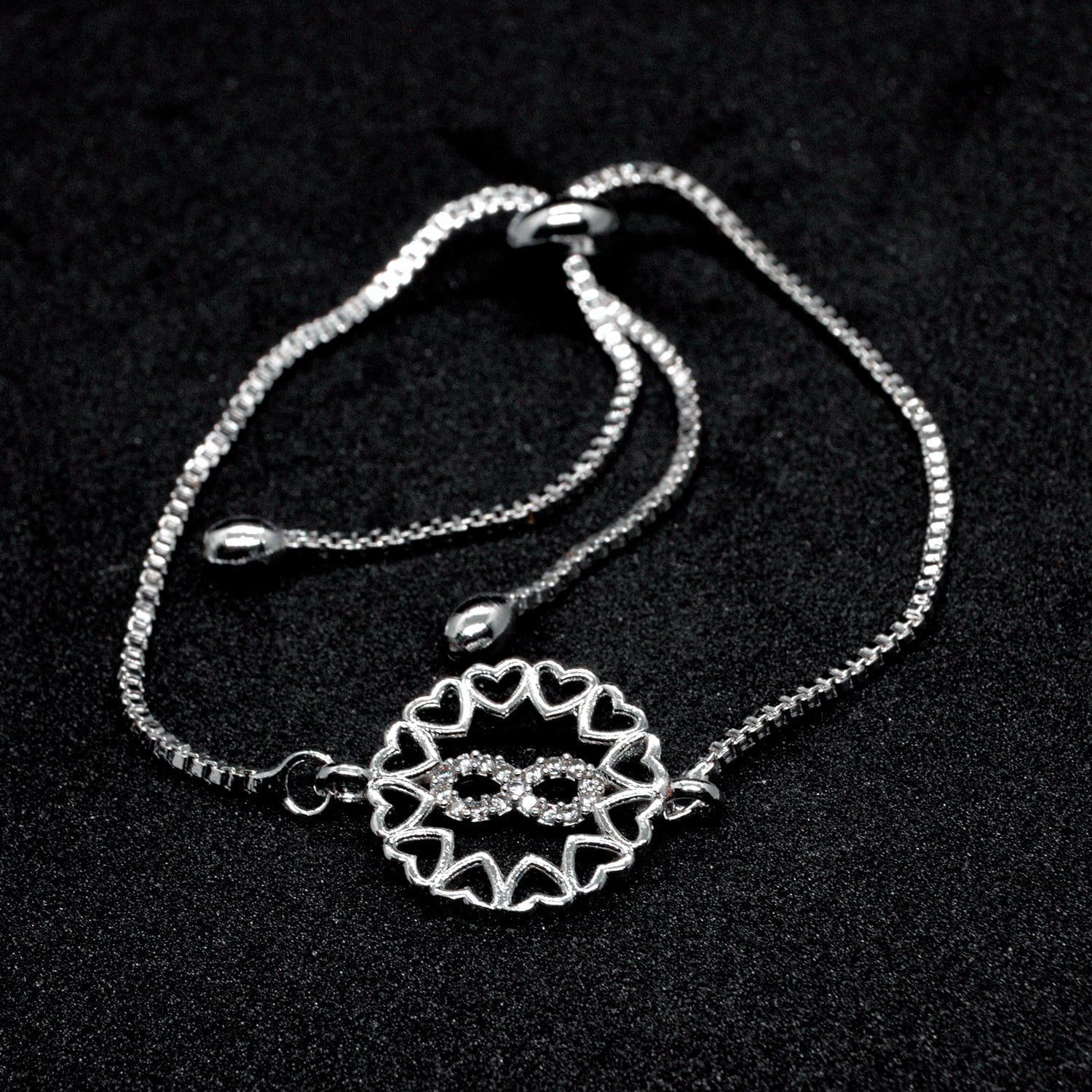 Toptan Gümüş Renk Zirkon Taşlı Yuvarlak Kalp Sonsuzluk Asansör Bileklik 848