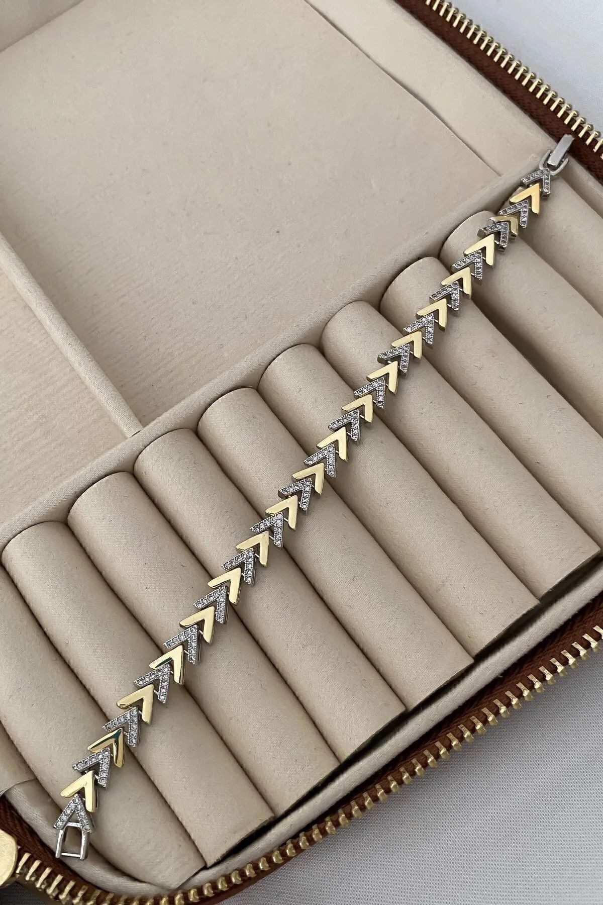 Toptan İki Renkli Özel Seri Zirkon Taş Ve Plaka Sıralı V Model Çelik Bileklik – 3174