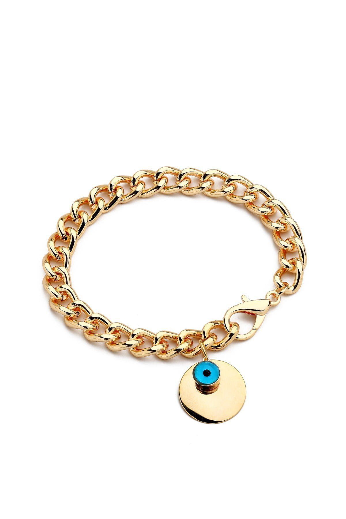 Toptan Kadın Altın Kaplama Nazar göz Boncuklu Para Detaylı Bileklik