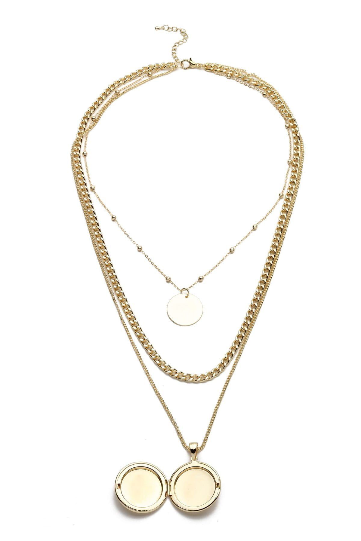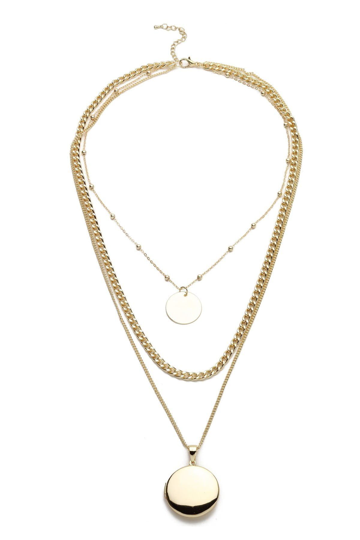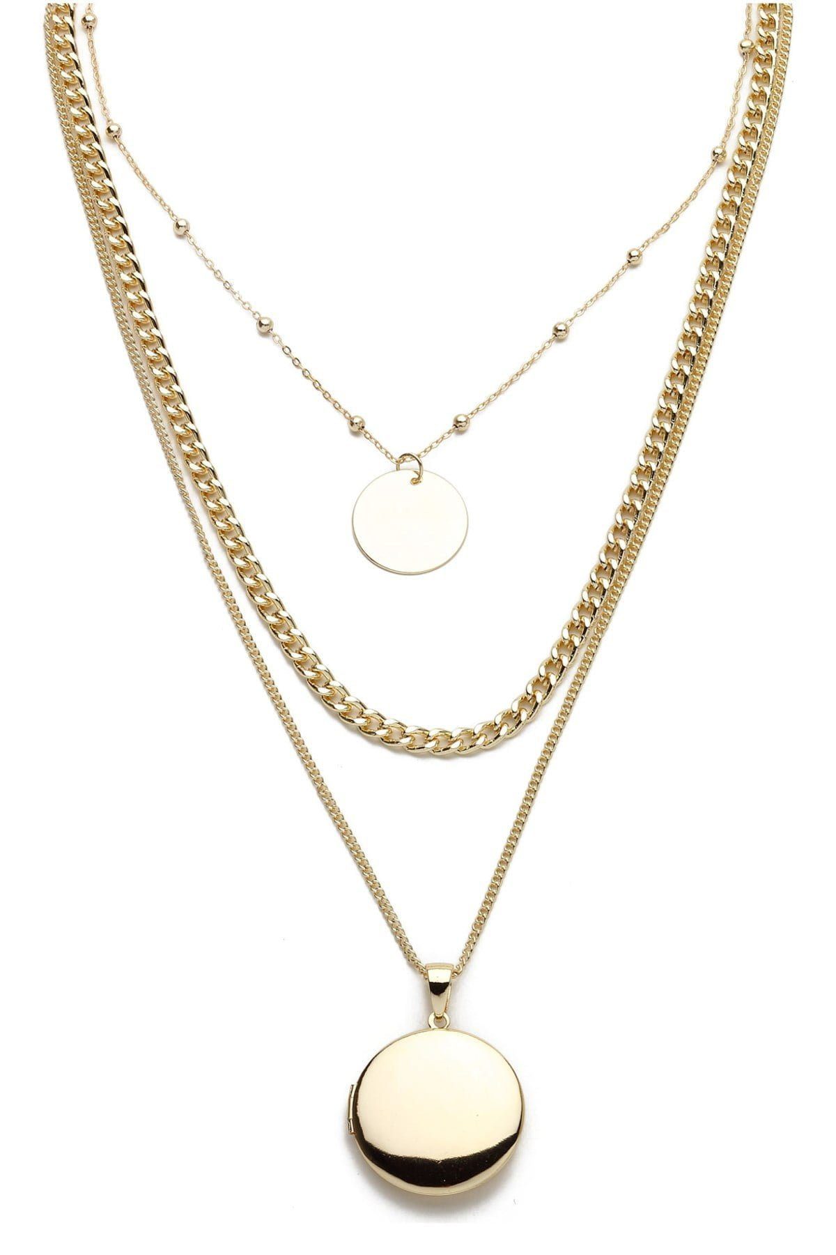 Toptan Kadın Altın Sarısı Kapaklı Üçlü Kolye