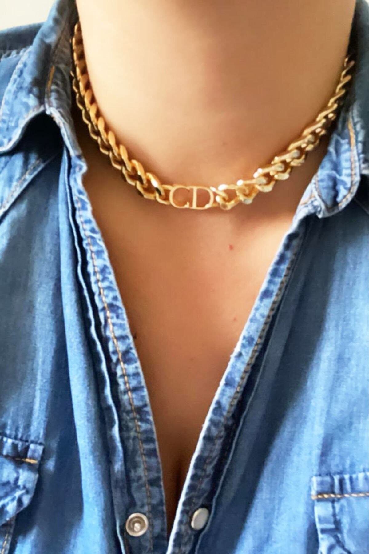 Toptan Kadın Gold Cd Harfli Christian Dio Model Kalın Zincir Kolye Altın Renk