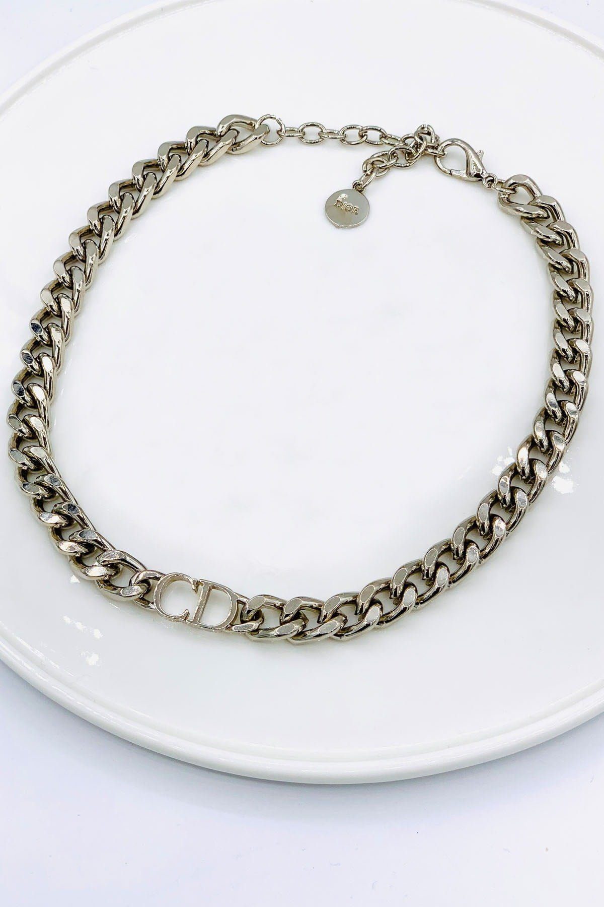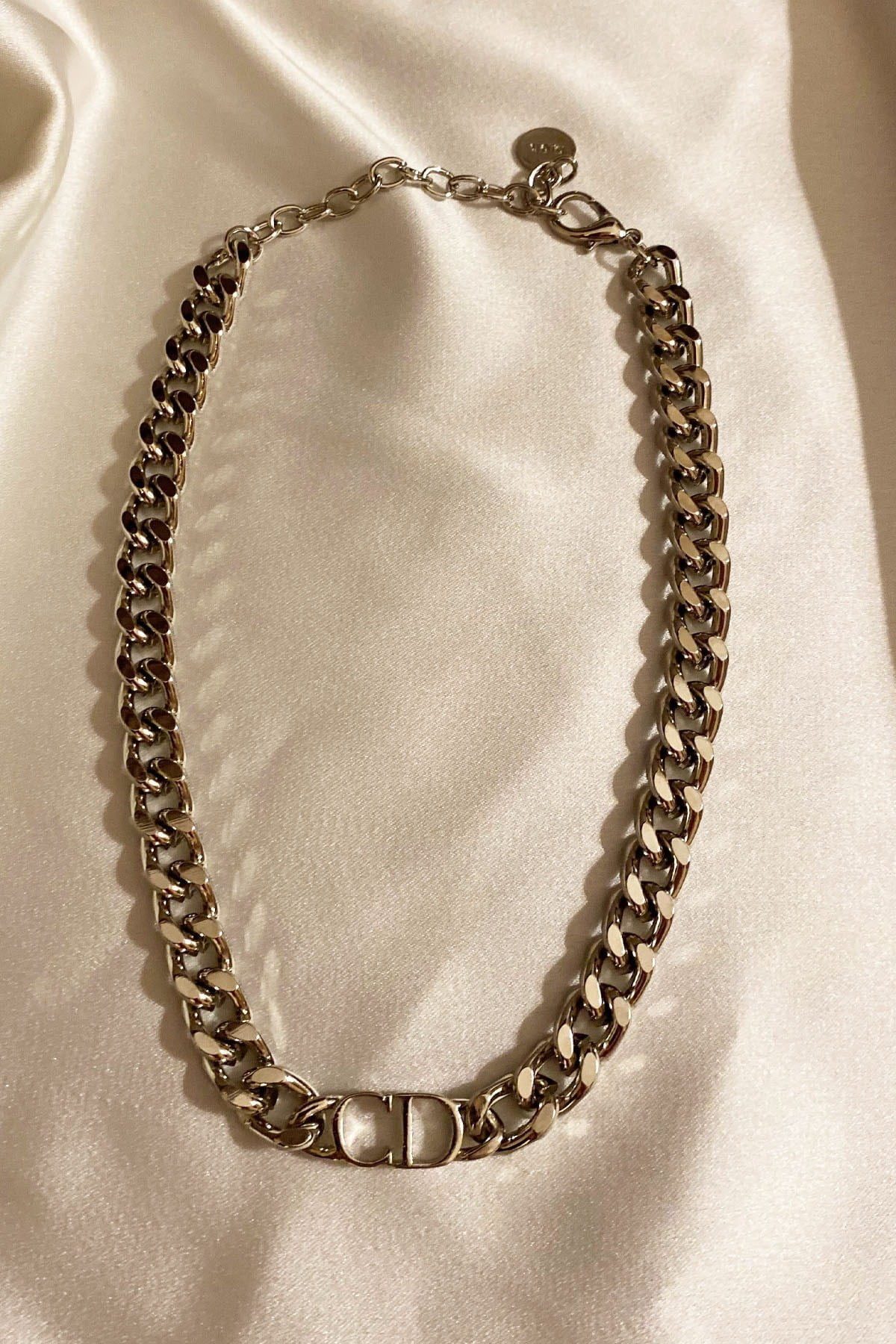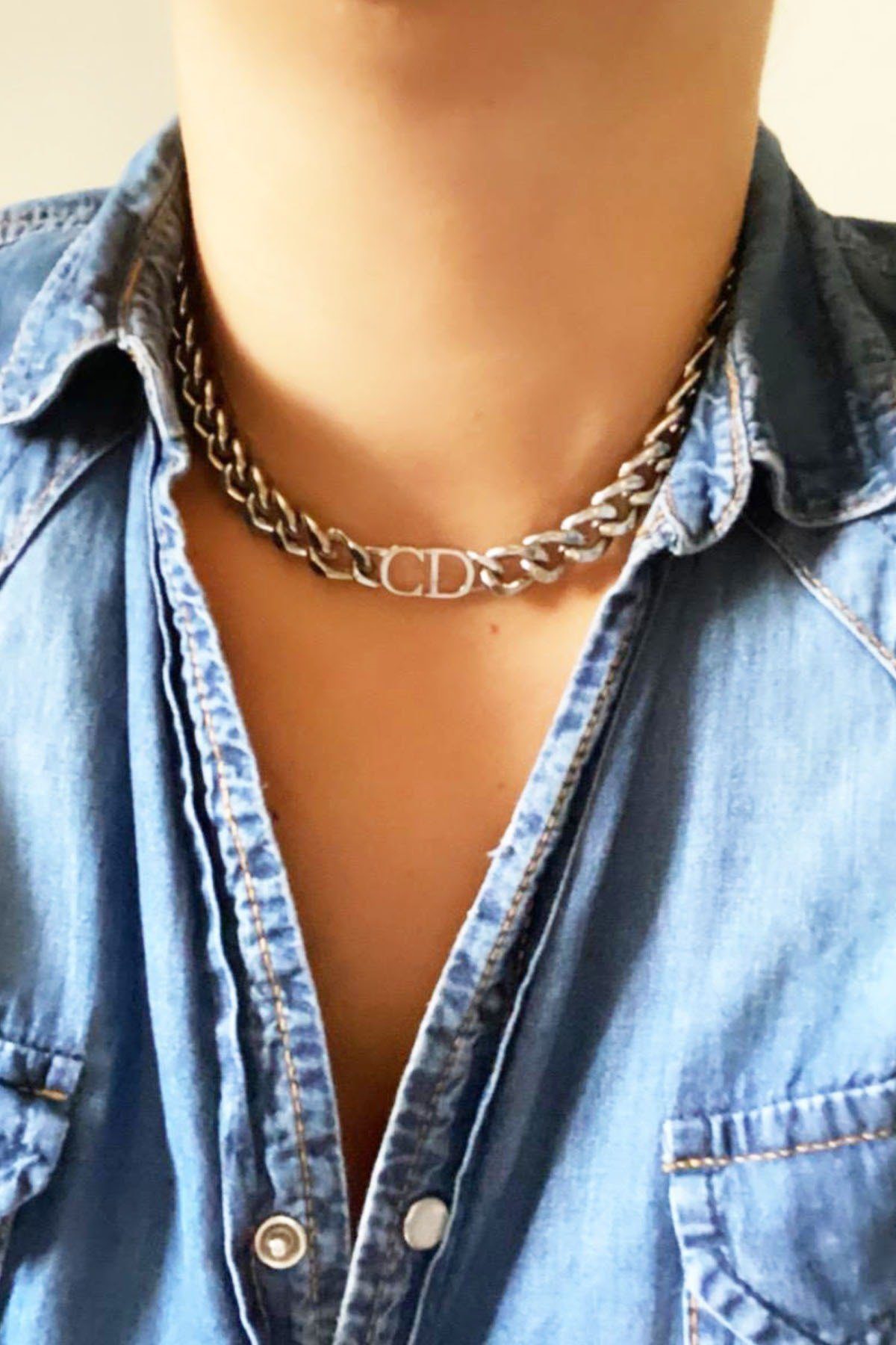 Toptan Kadın Gold Cd Harfli Christian Dio Model Kalın Zincir Kolye Gümüş Renk
