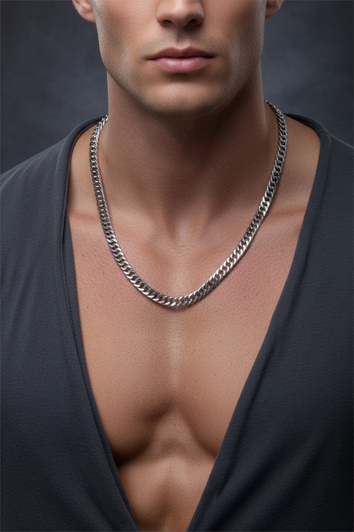 Toptan Kalın Sık Aralıklı Yassı Zincir Unisex Kolye – 240