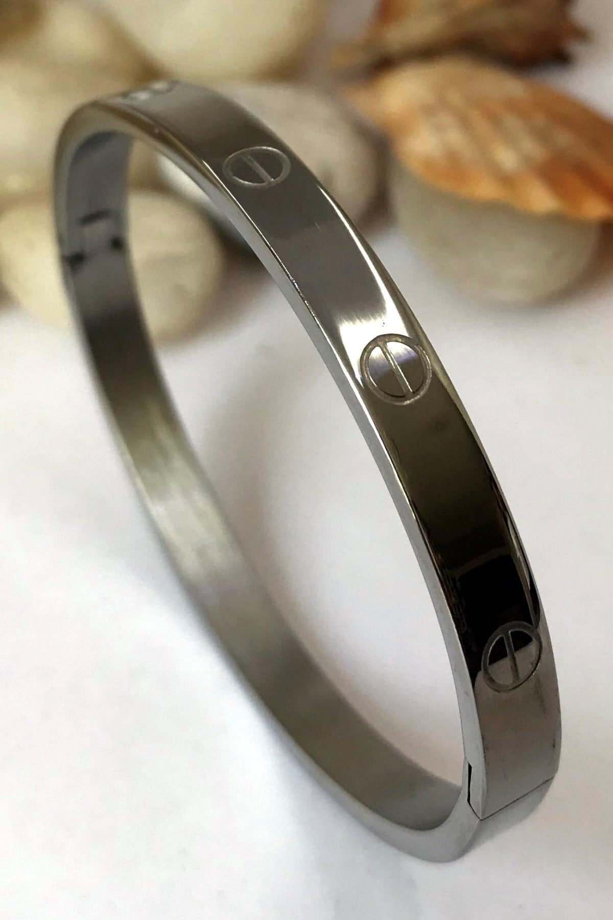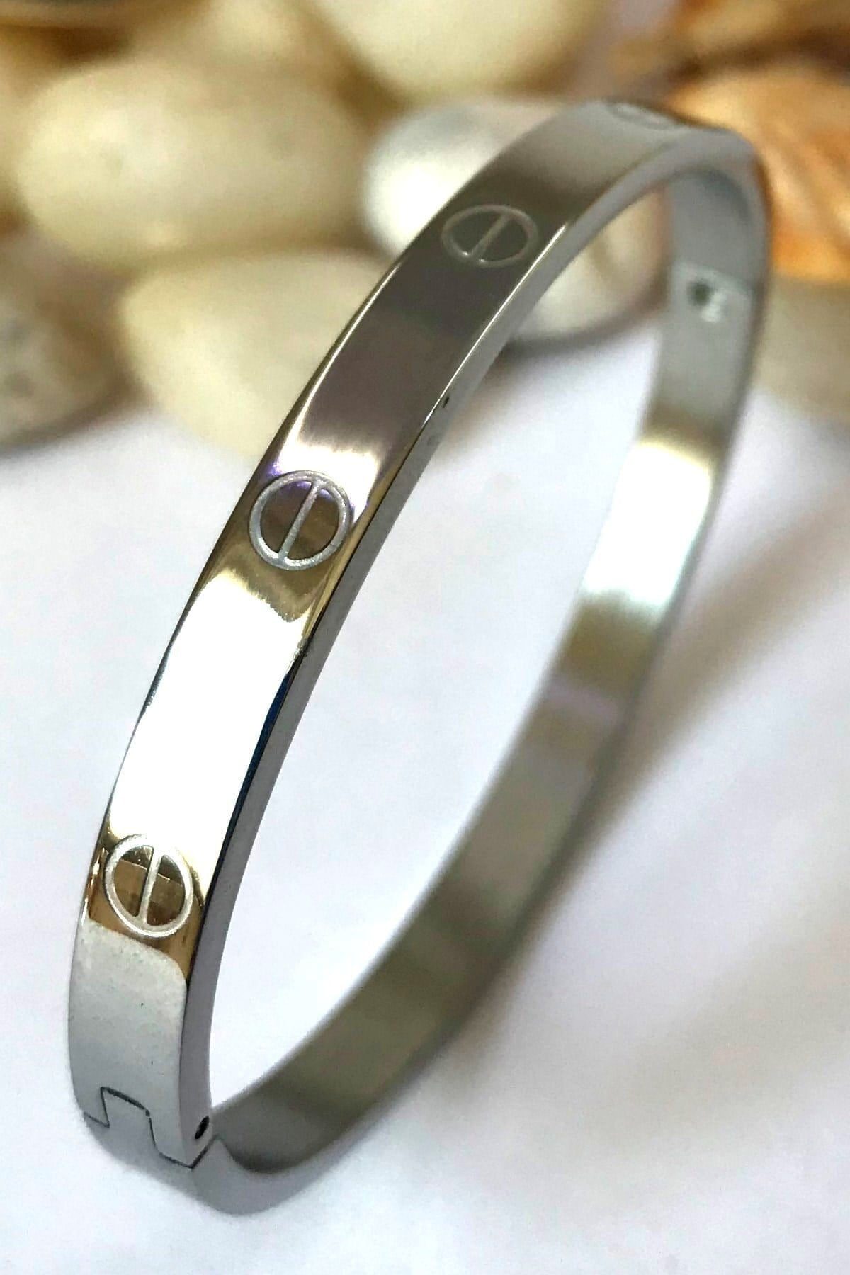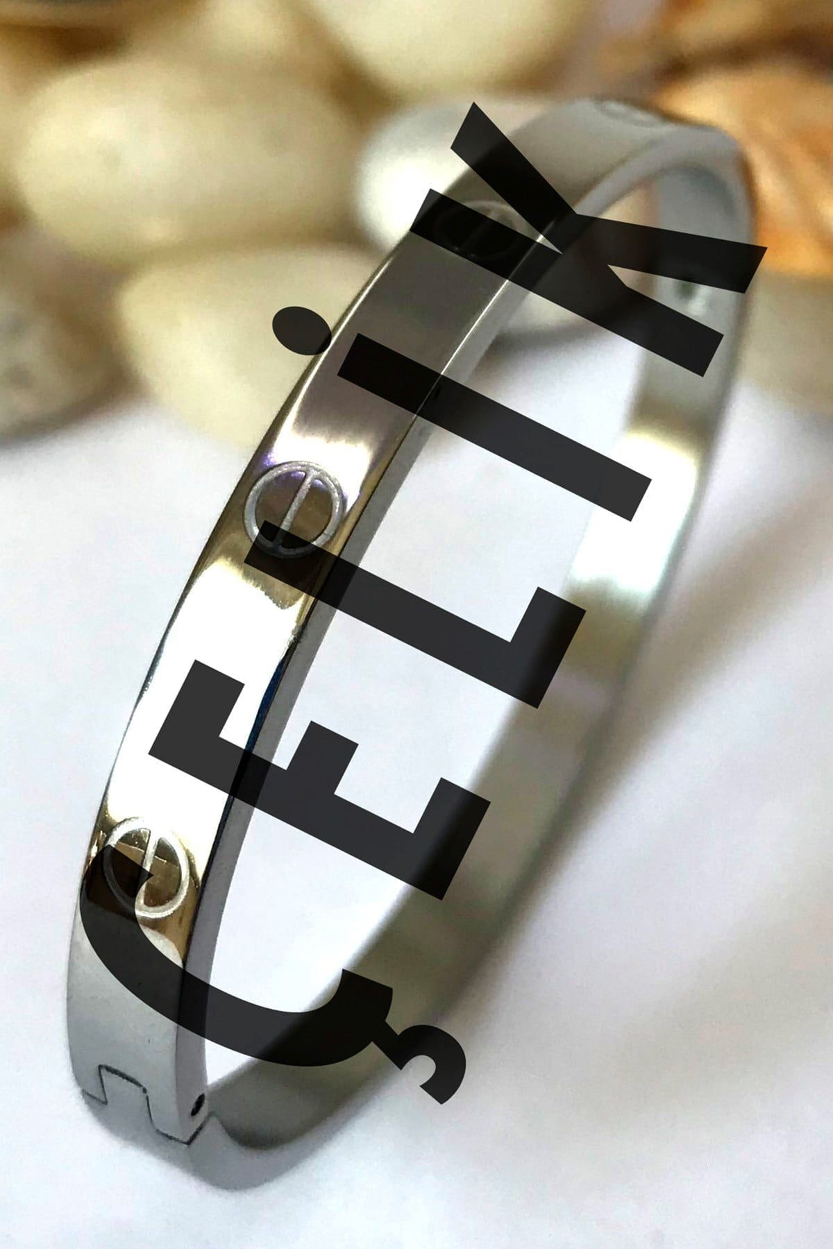 Toptan Unisex Kartier %100 Çelik Kelepçe Bileklik Gümüş Renk