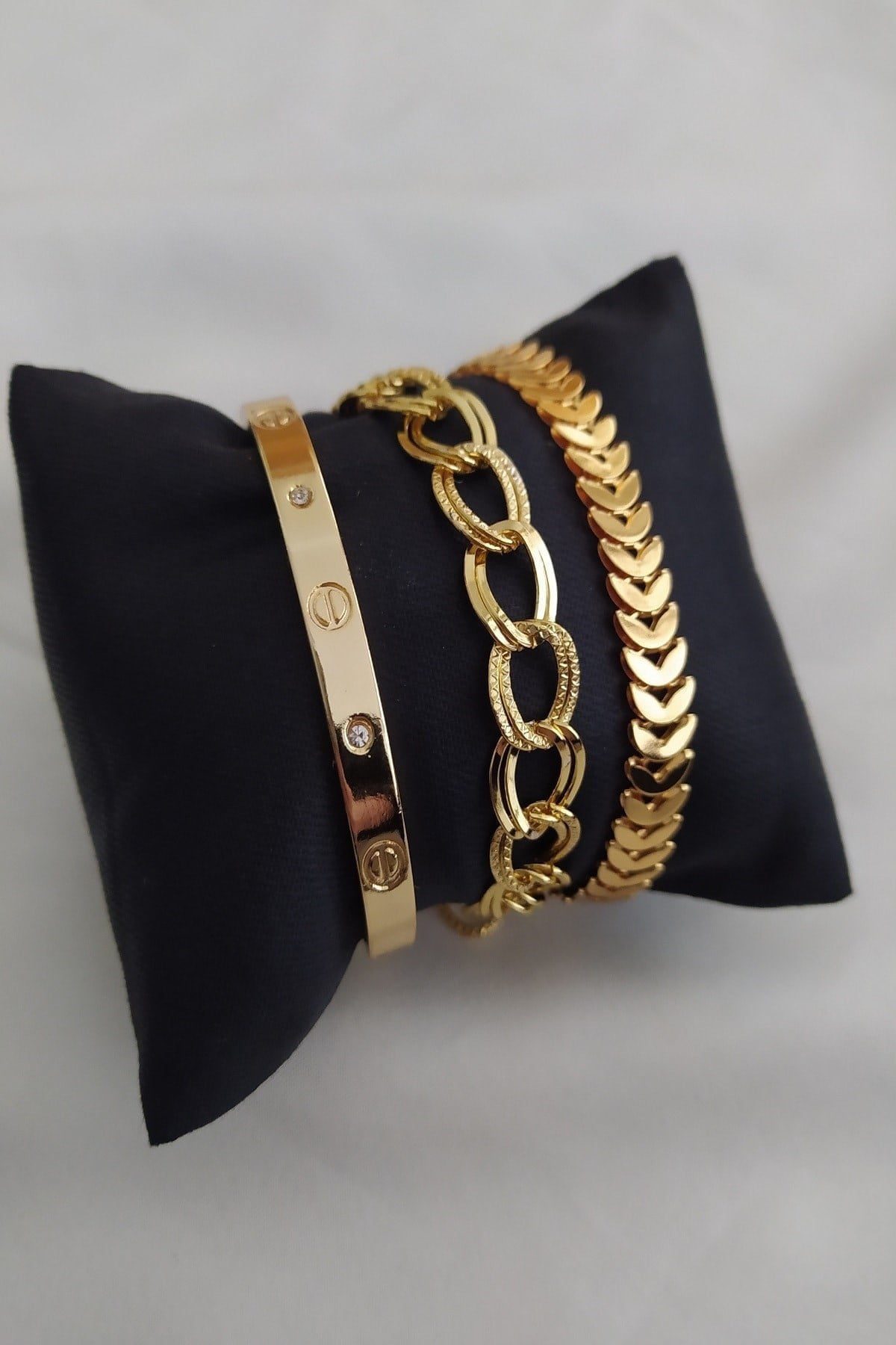 Toptan Kombin Kadın Altın Kaplama Kombin Bileklik
