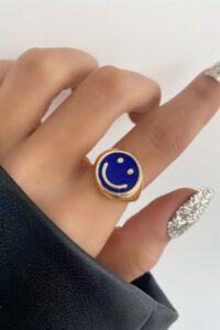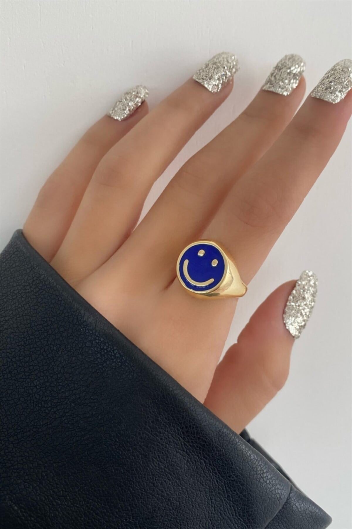 Lacivert renk mineli gülen yüz yüzük altın kaplamadır