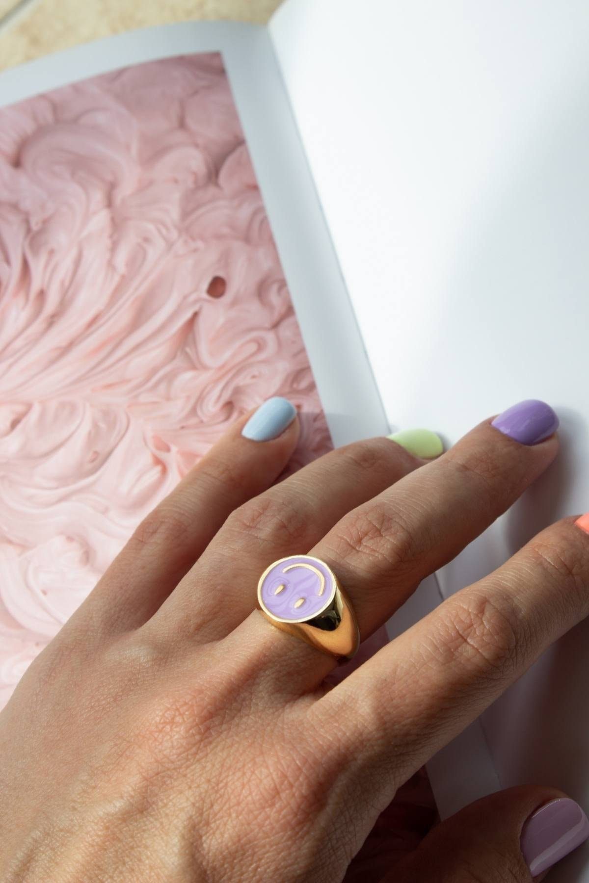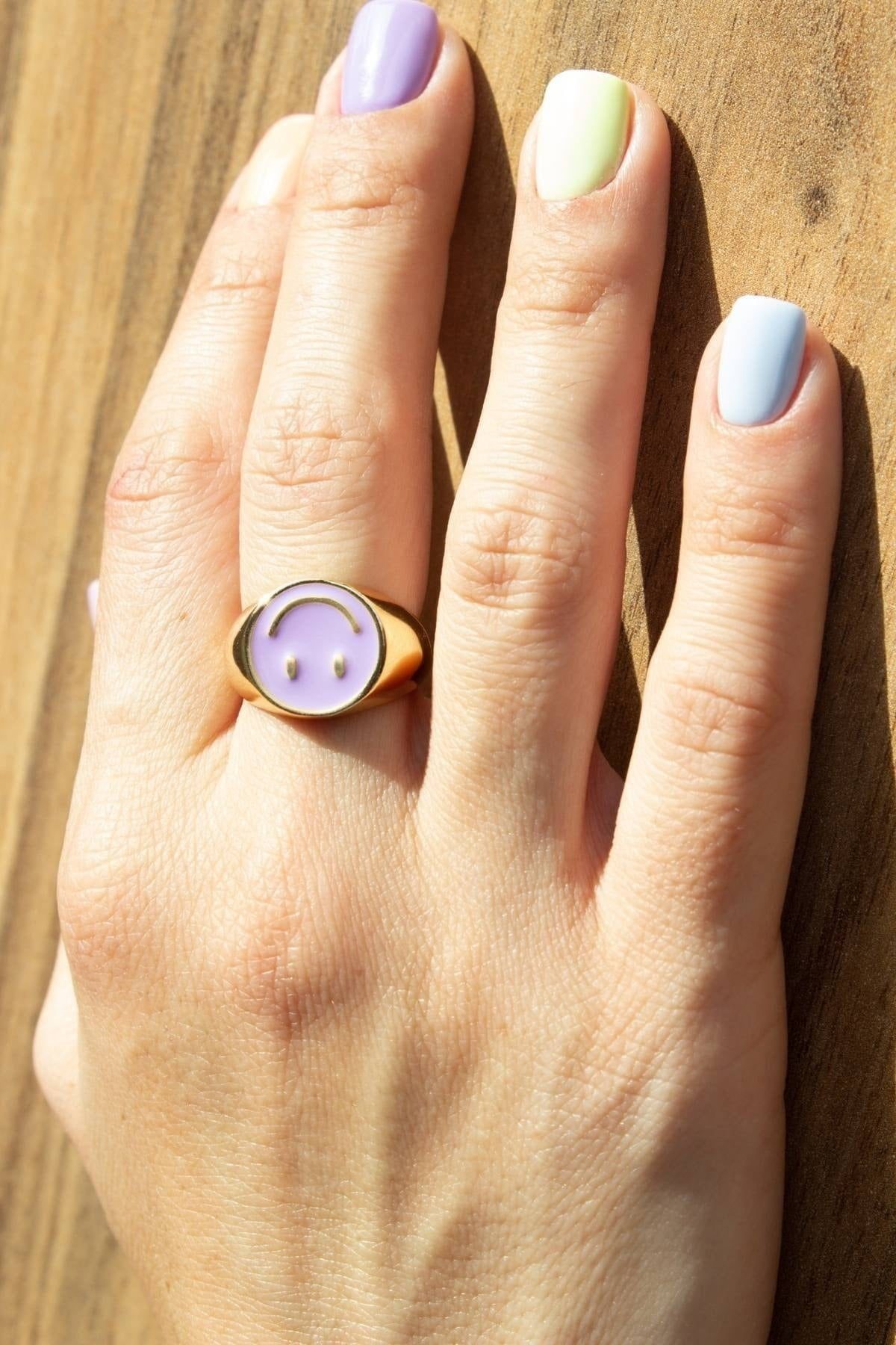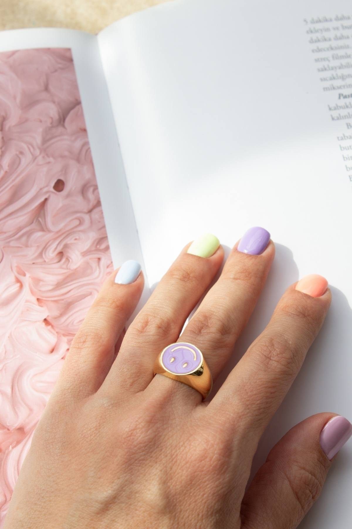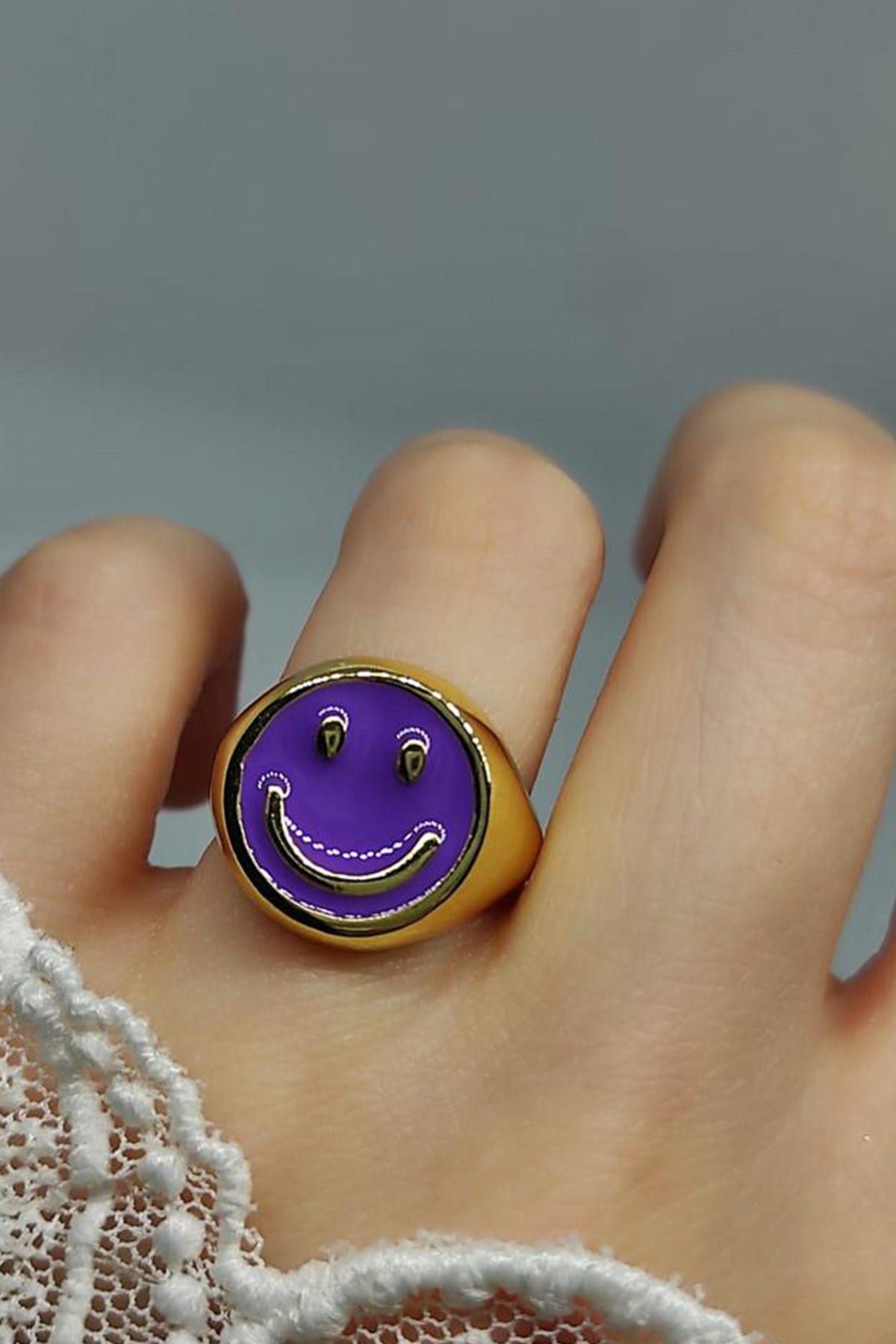 Toptan Mor Renkli Altın Kaplama Ayarlanabilir Gülen Yüz Yüzük