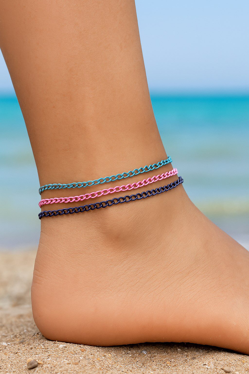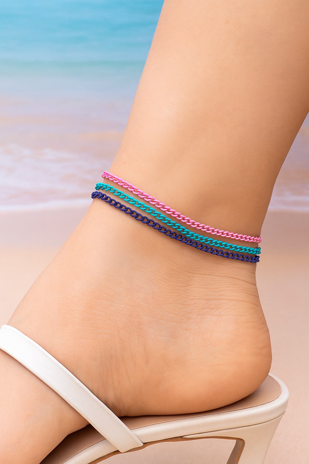 Toptan Renkli Üç Zincirli Sf Halhal – 1817
