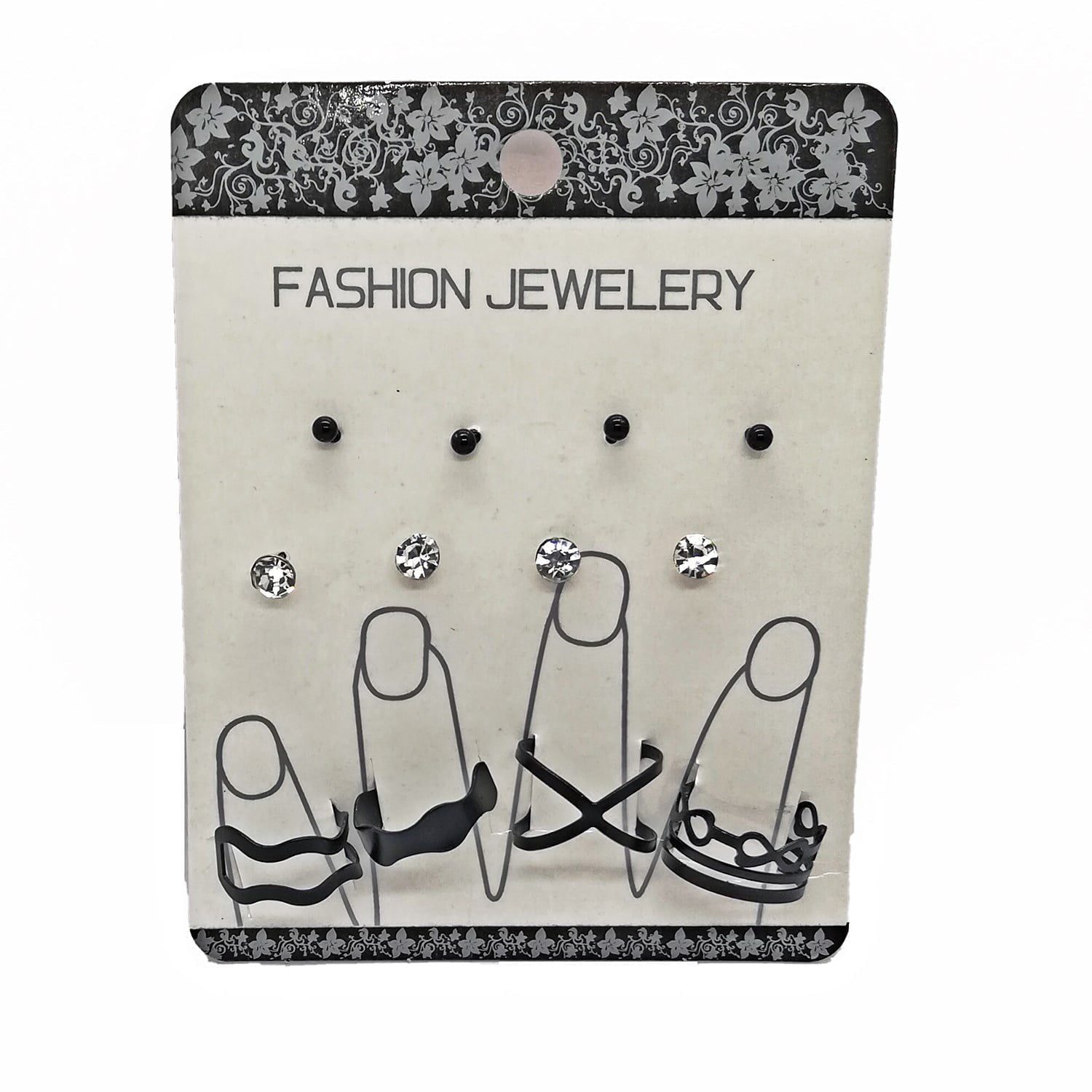 Toptan Siyah Renk Kombin Yüzük Küpe Seti 1136