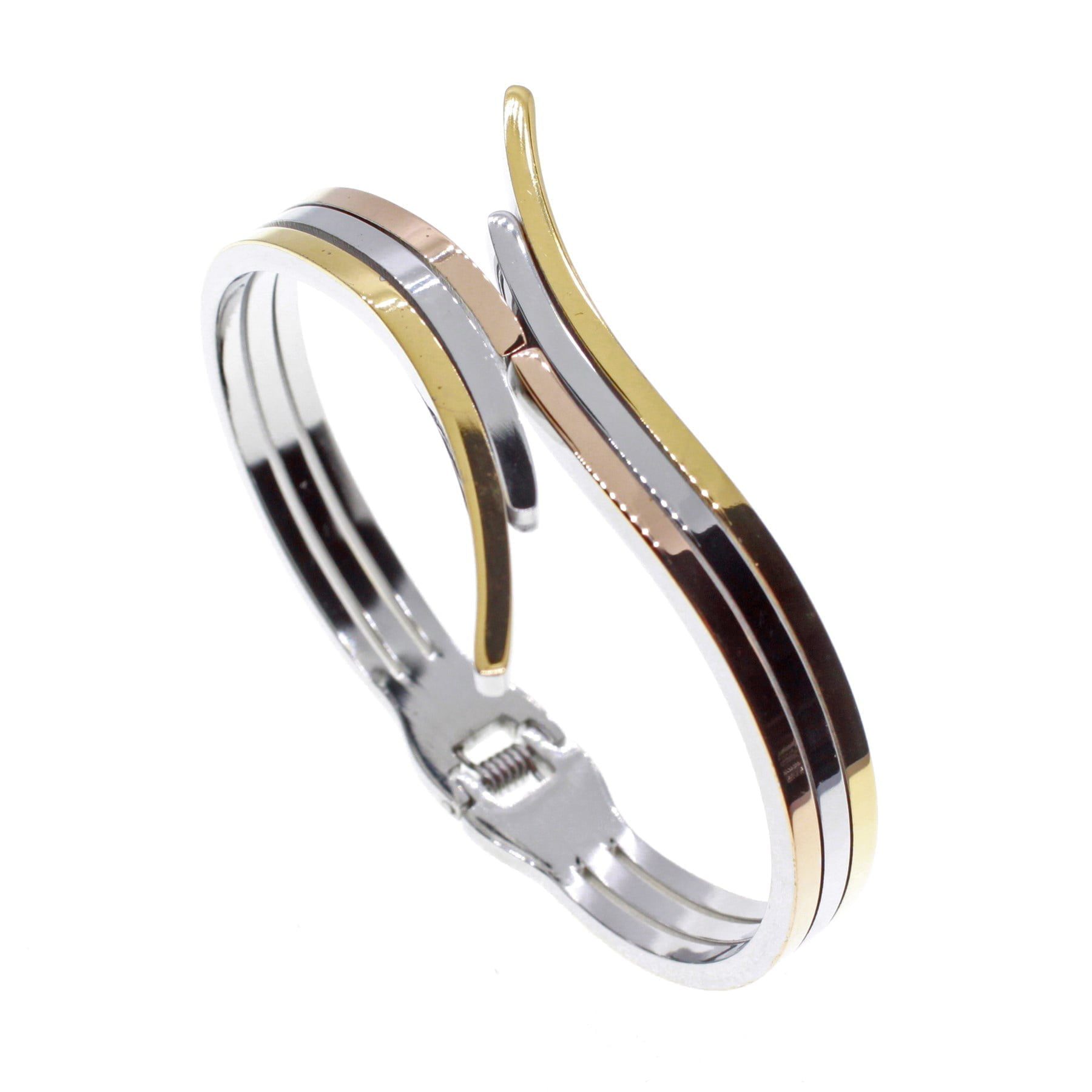 Toptan Üç Renk Altın Rose Gümüş Renk Saçak Model Çelik Kelepçe Bileklik – 1672